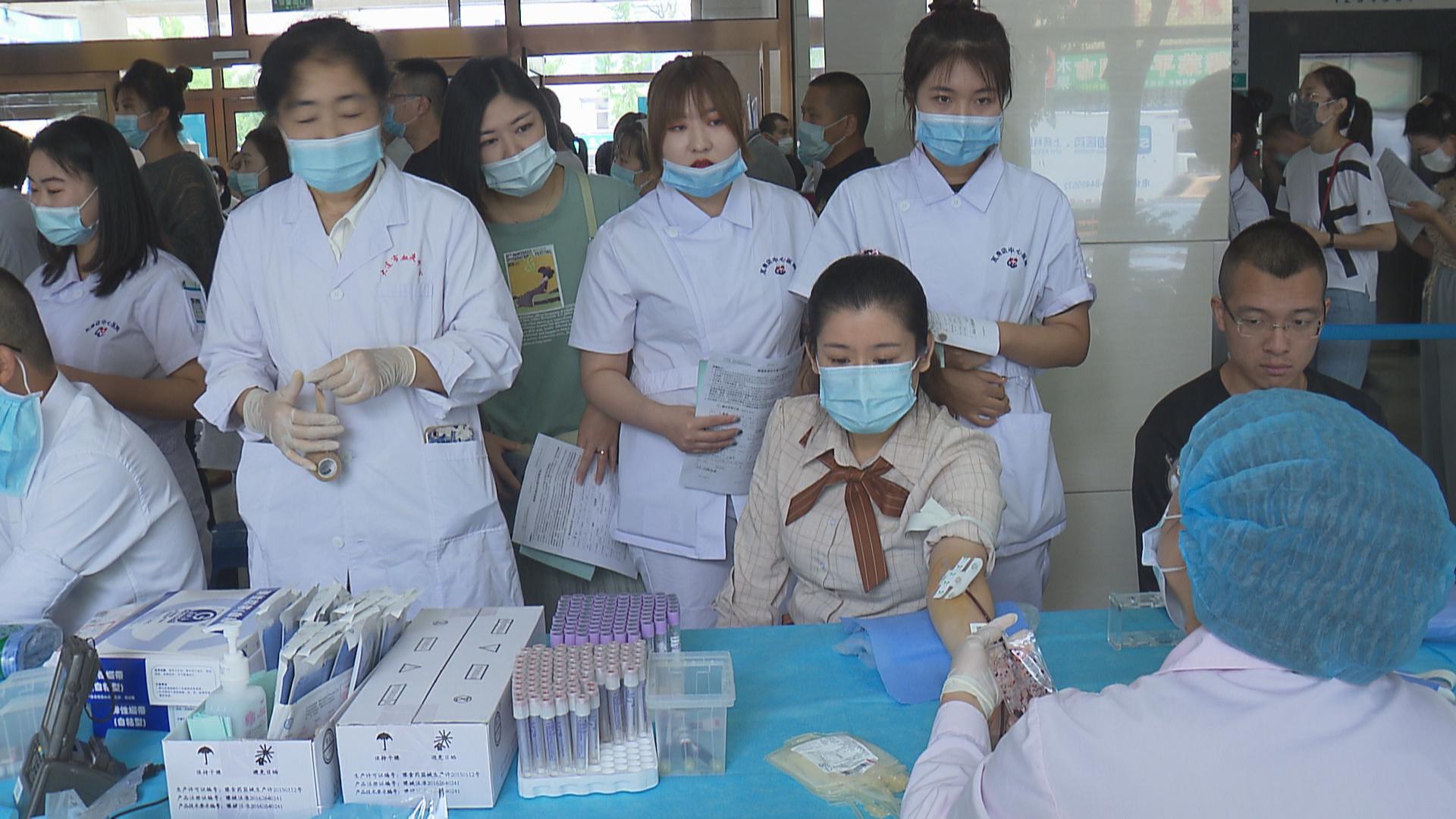 现场,参加献血的医护人员排起了长队,依次进行信息登记、血压检测、血液检查、静脉采血等环节。采访中记者了解到,很多医务人员是下了夜班直接过来排队进行献血的。他们表示,作为医务人员深知血液在抢救生命时的重要性,所以他们总是积极参加无偿献血活动,体现了医务工作者“救死扶伤、无私奉献”的大爱精神。
