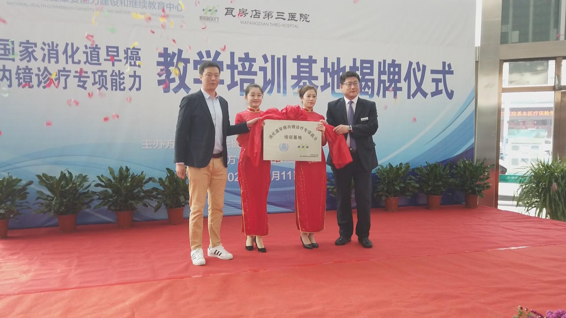 10月11日上午,国家消化道早癌内镜诊疗专项能力教学培训基地落户我市第三医院,副市长郭兆平和国家卫健委、我市卫健局以及恒康医疗集团、第三医院等相关部门领导和医疗专家出席揭牌仪式。