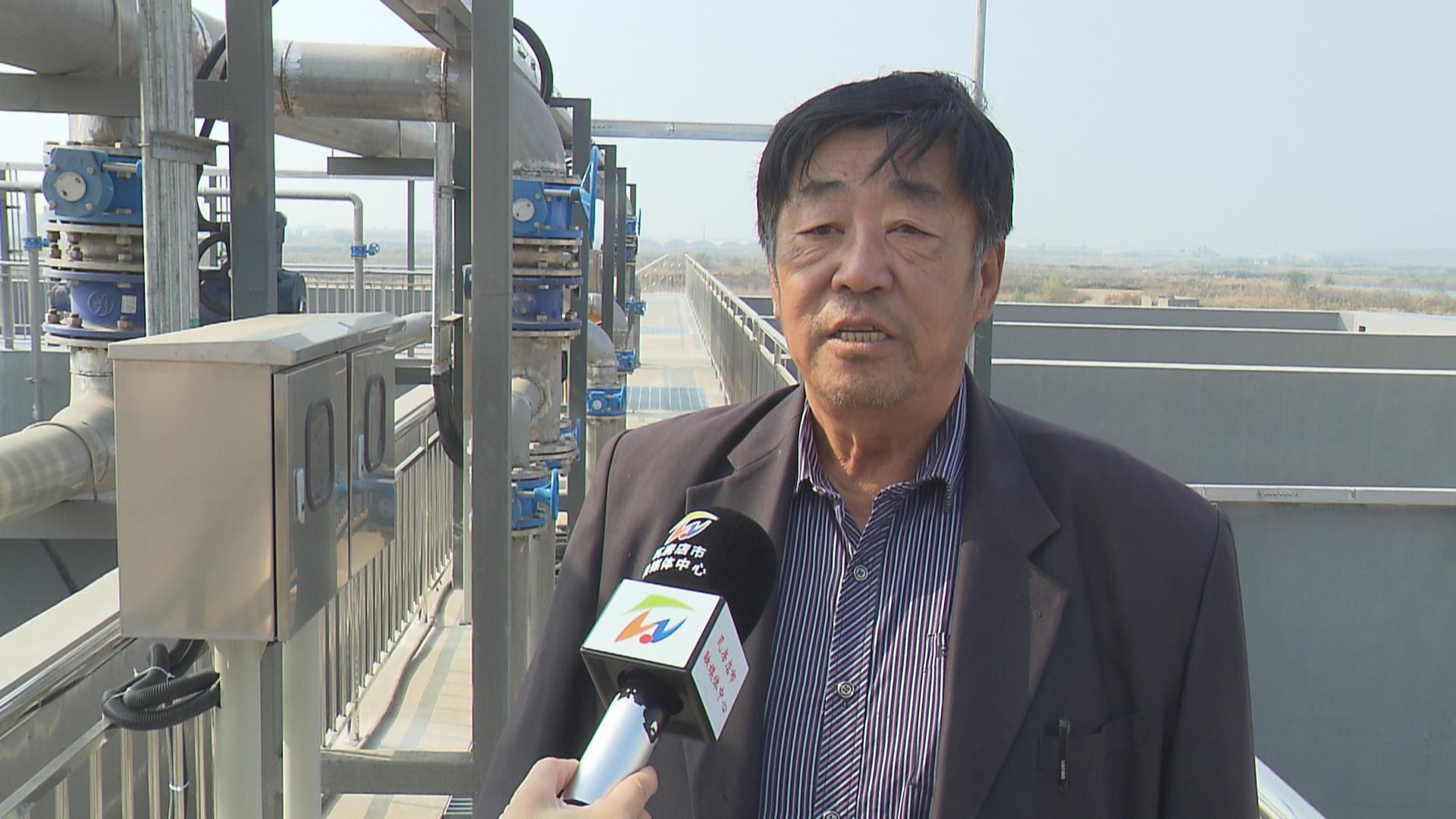 三台满族乡污水处理厂项目总工程师 曹秋利:“咱三台乡这个污水处理厂引进国外先进的BIOCOS工艺,BIOCOS在处理达标的标准是一级A排放,一级A排放先经过预处理,预处理后进入到生化池,生化池处理完后,经过深度处理间,深处里间处理完后,达到标准排放,优越性省人工、省电、环保。”