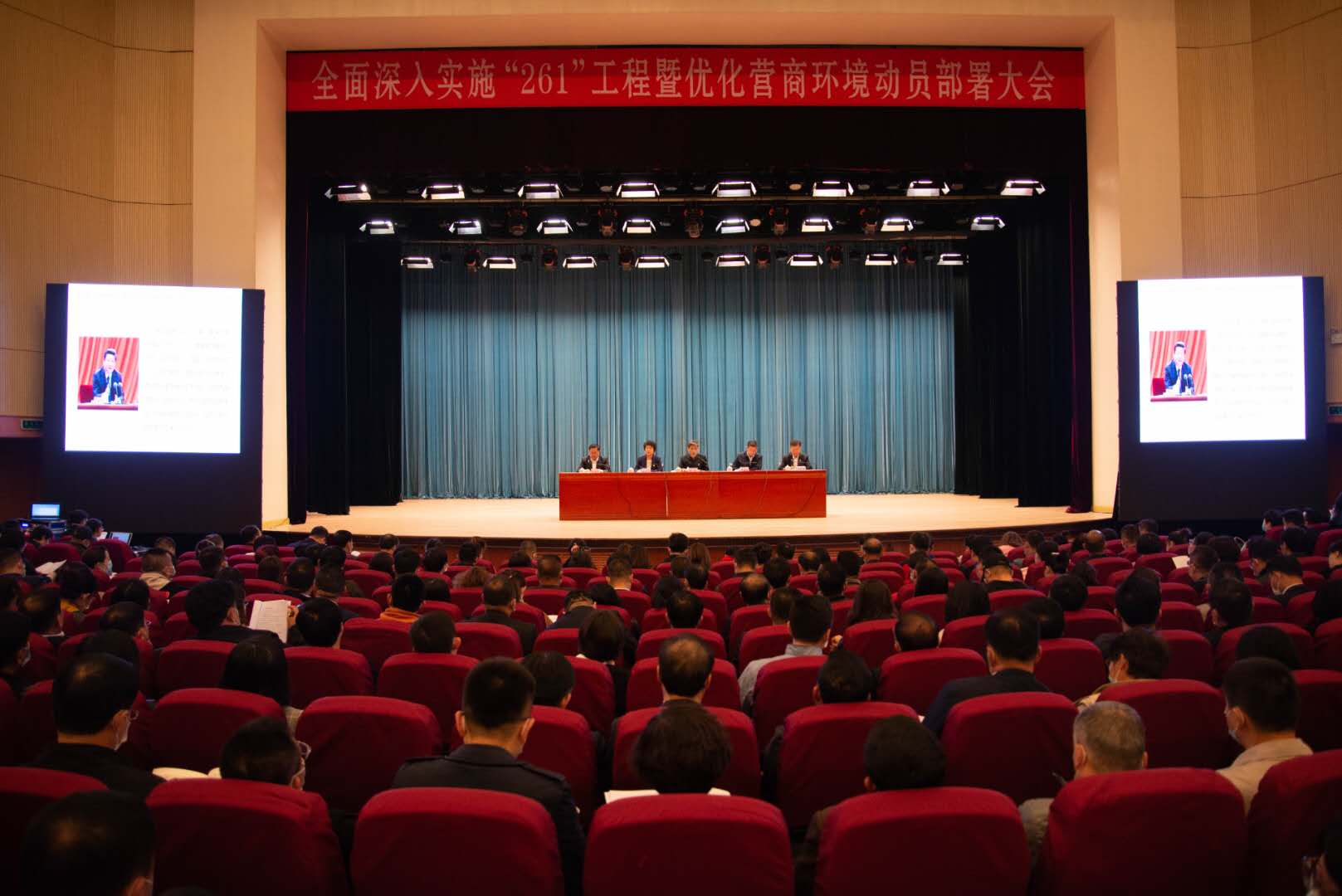 10月23号下午,我市在人民剧场召开全面深入实施“261”工程暨优化营商环境千人动员部署大会。这次大会的主题是“解放思想、开放创新、破冰启航,把经济发展的重锤敲在全面深入实施‘261’工程的点子上”,大会的主要任务是贯彻落实市委八届九次全会精神,对全面深入实施“261”工程,进行再动员、再部署,也是向全市发出的攻坚作战动员令。市领导蹇骞、周振雷、张春玉、马利民、杨海三等出席会议。太平湾合作创新区领导,辽宁红沿河核电有限公司领导,瓦轴集团有有限公司领导,曾担任过正市级的老领导、老同志,全市各单位副乡局级以上领导;部分驻瓦金融单位、省市垂直管理单位负责人;人大代表、政协委员、基层党代表、统战团体代表、企业代表,部分市直单位科室负责人;各乡镇街道办事处所辖社区和村支部书记等共1100人参加会议。