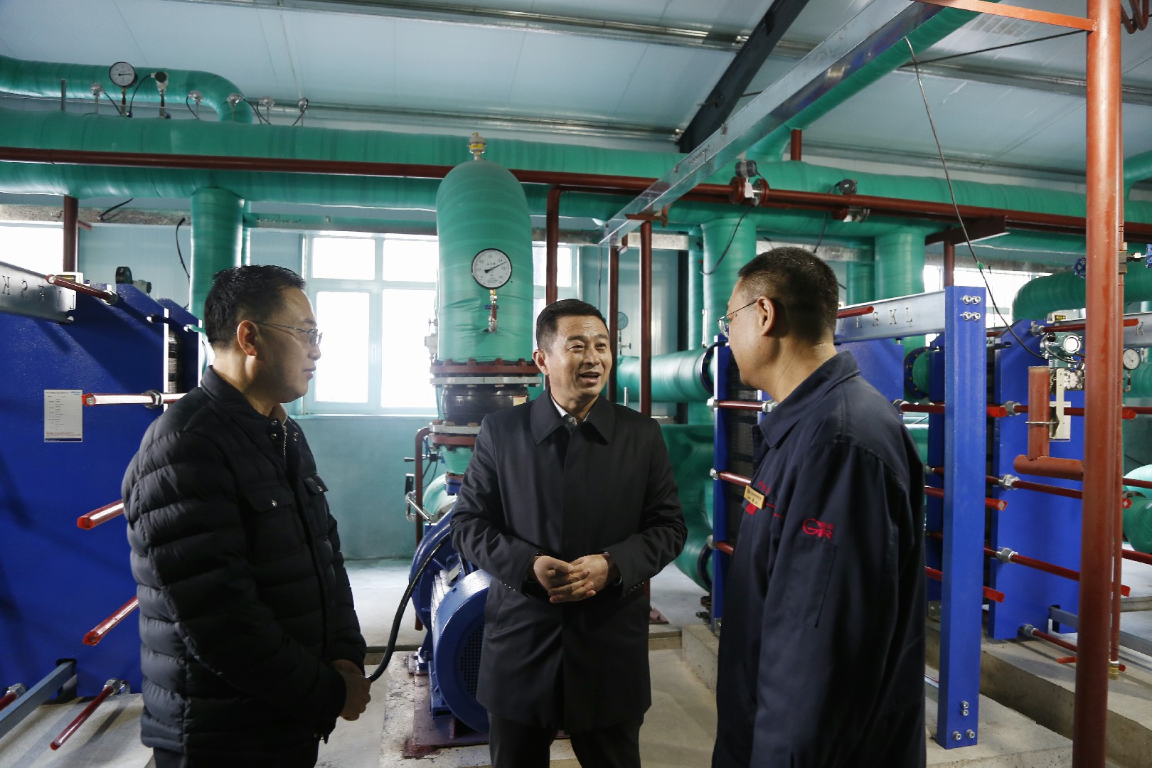 周振雷一行先后来到大连北方热电股份有限公司、大连裕丰供热集团有限责任公司富华换热站、瓦房店市旭龙供暖有限公司仙洞街换热站,实地查看了供热企业的泵房、锅炉房、自动化控制室等,详细了解各供热企业的供热面积、管网情况、出水回水温度、燃煤储备及锅炉运行、安全保障等情况,并就存在的困难和问题与现场人员进行了研讨。