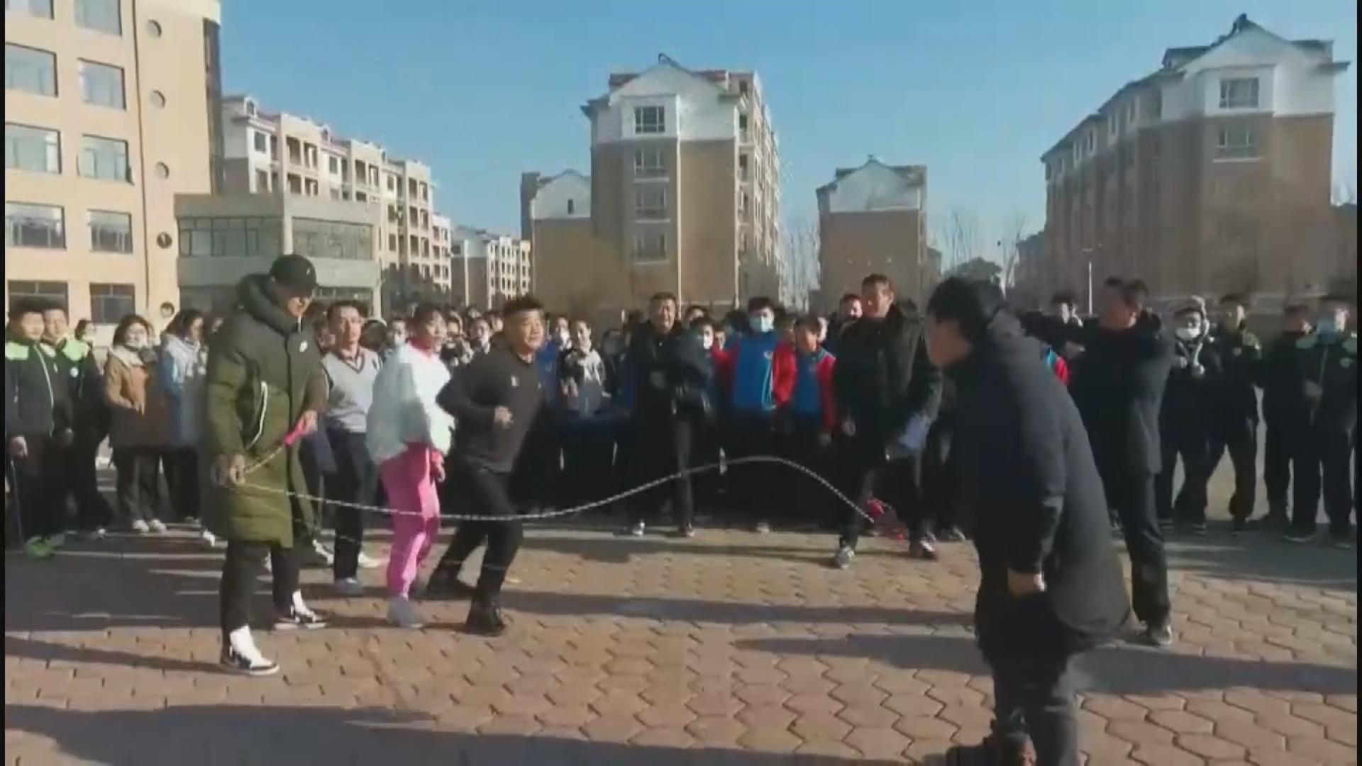 活动首先以七、八、九年组为单位,分别展开了单人跳绳、立定跳远、仰卧起坐和实心球比赛,虽是寒冷的冬日,但孩子们参与热情非常高涨,展示了青年人特有的朝气。