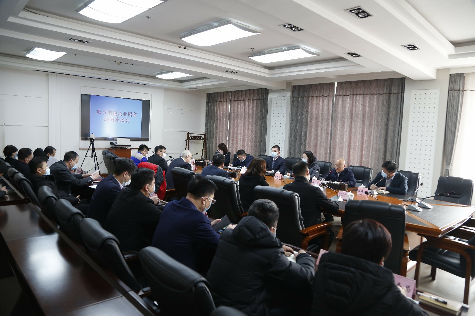 2月3号下午,我市在市政府会议室召开重点纳税企业招商政策座谈会,进一步优化营商环境,为企业做好“妈妈式”服务,助力企业做强做大。市长周振雷、副市长郭兆平、石宏博、赵智出席座谈会;市直部门主要负责人与重点纳税企业负责人参加座谈会。