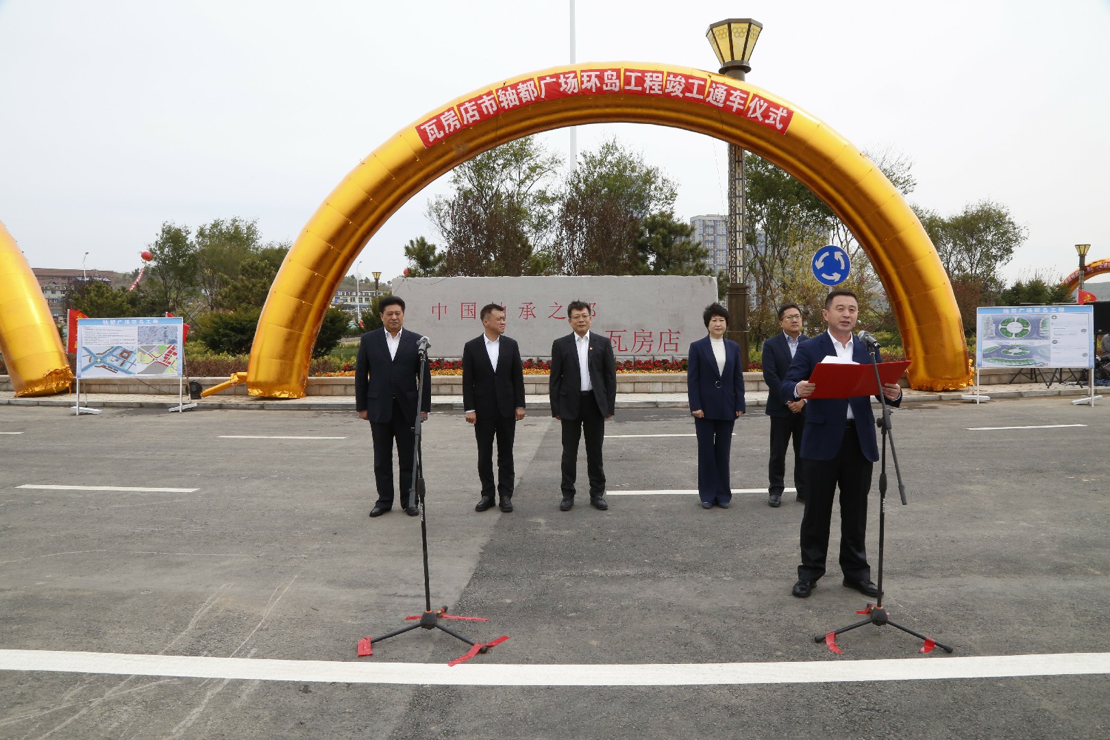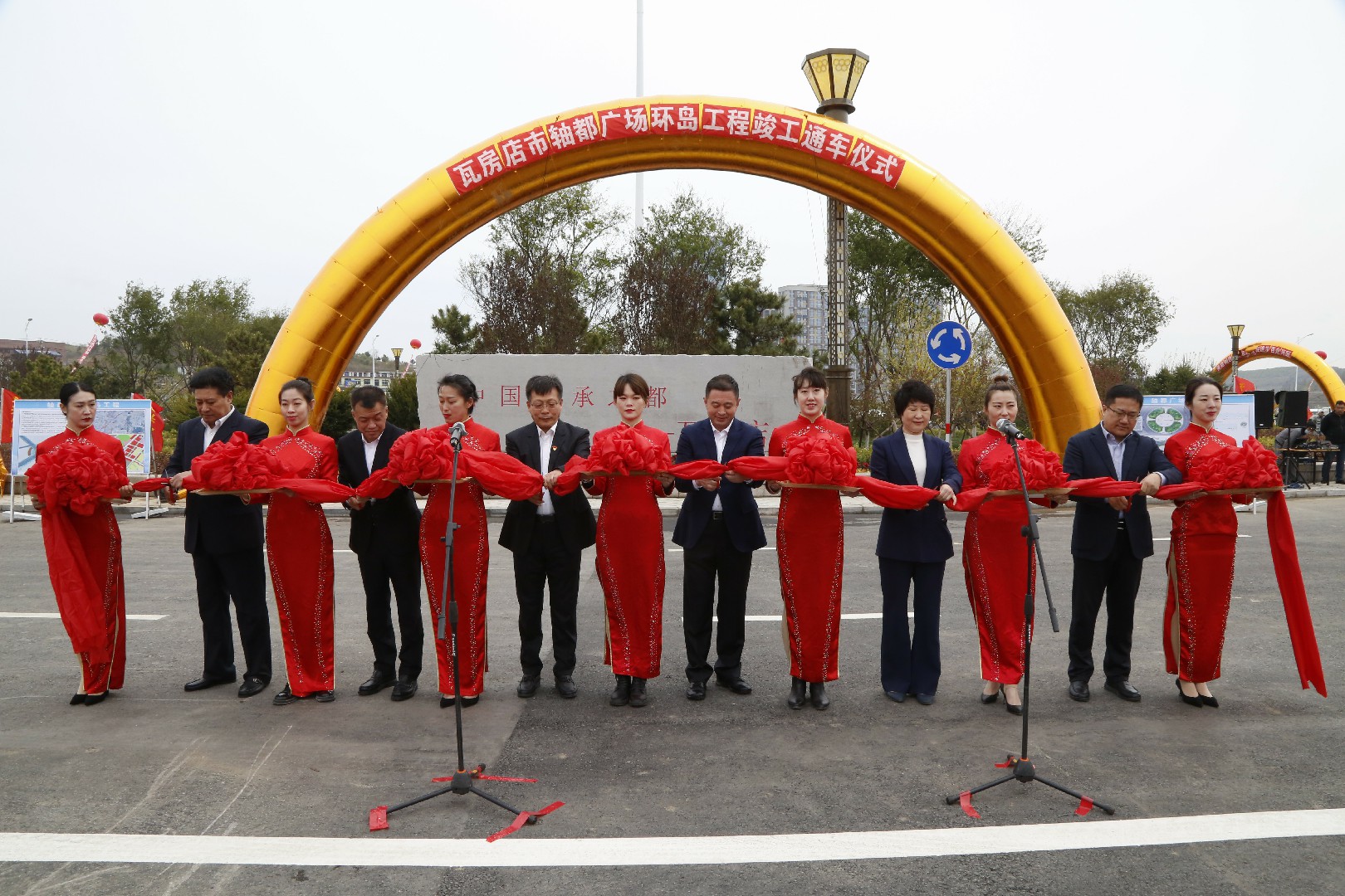 最后,市领导共同为西内环街南段道路工程和轴都广场环岛工程竣工通车仪式剪彩;市长周振雷宣布西内环街南段道路工程和轴都广场环岛工程正式通车。