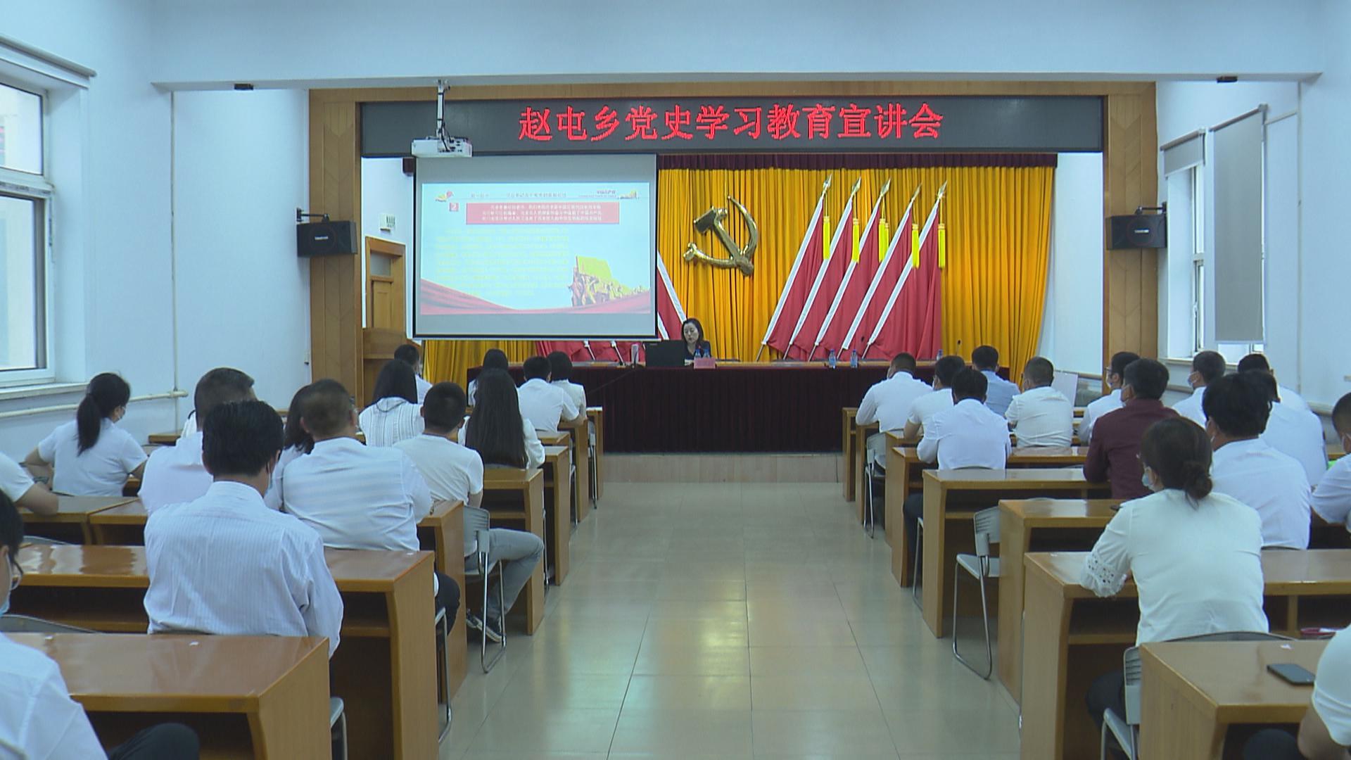为庆祝中国共产党成立100周年,深入贯彻落实习近平总书记在党史学习教育动员大会上的讲话精神,日前,赵屯乡组织全乡党员干部开展党史学习教育宣讲会。