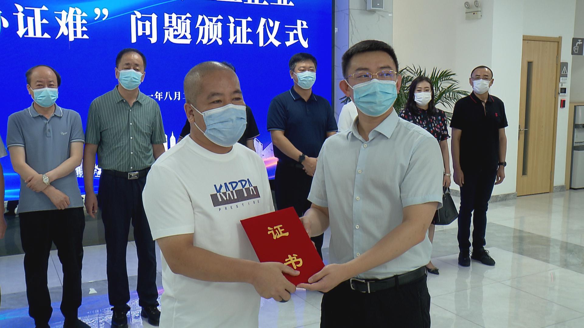 8月2日上午,瓦房店市在政务服务中心举行第二批第六次解决工业企业“办证难”问题颁证仪式。市长周振雷,市委常委、常务副市长宋玉章,市委常委、副市长林晓晖,市政府办、科工局、自然资源局、住建局、营商局、轴承产业开发区管委会以及相关乡镇街道主要负责同志参加活动。