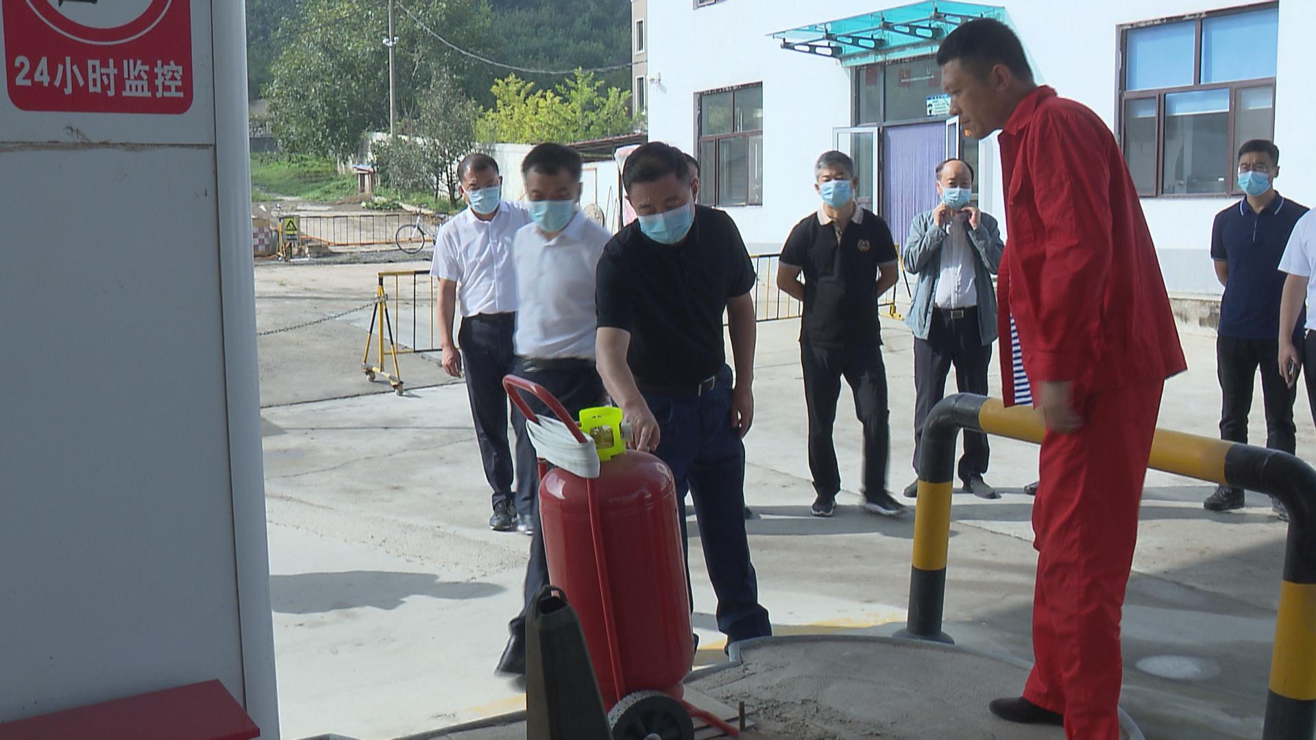 最后,周振雷来到金顺达加气站,查看加气站内储气罐体、消防设施等安全使用情况,了解灭火器有效期、数量能否满足需要及灭火沙存放等方面情况,并现场观看工作人员演练操作灭火器。周振雷强调,加气站、加油站等都是消防安全的重点地段,安全责任非常重大,相关部门要加强监管,随时抽查,确保消防设施完好,安全制度落实到位。要通过演练、培训等方式,提高工作人员应对突发事件能力,有关部门要加强对消防演练的监管和考核力度,对未达标企业要进行处罚或者停业整顿。周振雷最后强调,各有关部门和企业要本着坚持减化程序的原则,以便捷、迅速为第一要务,把消防安全各项措施落实到实战上,落实到细节上,以战时状态把安全第一落到实处,全力以赴做好安全生产各项工作。