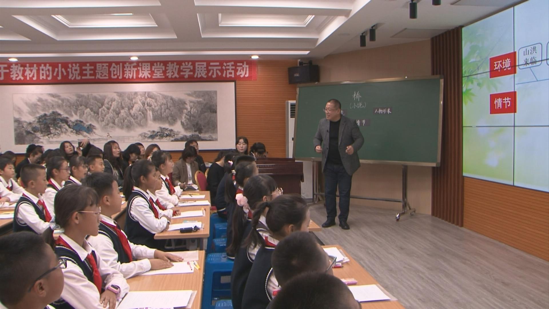 在首个“基于教材的小说主题创新课堂教学展示活动”研修环节中,来自遵义师范学院附属实验学校和我市义勇小学的两名教师通过对六年级第一学期《桥》这一课的不同诠释,为我们呈现了一场精彩的同课异构;在第二个“共同体成员校共话小说主题教学”环节中,遵义师范学院附属实验学校、市义勇小学和上海市兴业中学三所成员校教师分别结合各自的教学实践,现场分享了“如何深入浅出落实小说三要素”“从一棵树到一片森林——以群文阅读为抓手,打造语文学科特色”和“小说教学三部曲:教、扶、放”的微报告,报告精彩纷呈,让人耳目一新。随后,大连教育学院初中研训中心和上海市虹口区的两位初中语文教研员对示范课进行了点评。市教育局和上海市师资培训中心相关负责人对活动进行了总结,希望教育者不忘初心,让主题阅读这枝语文园地之花深深扎根,开花结果。此次活动为我市师生思想道德素质和科学文化素质提升搭建了平台,为全市教育事业发展提供了精神动力和智力支持。