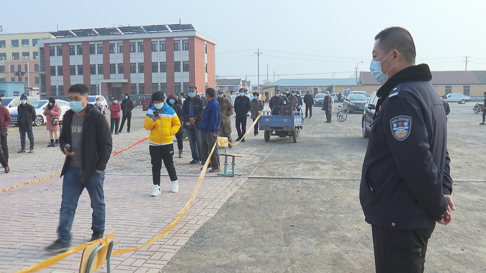 在十三中学监测点,现场秩序井然,村民们按照操场上所标识的各个点位对应站好,提前准备好行程码和身份证,等待工作人员检查证件,并逐一进入检测口进行检测。