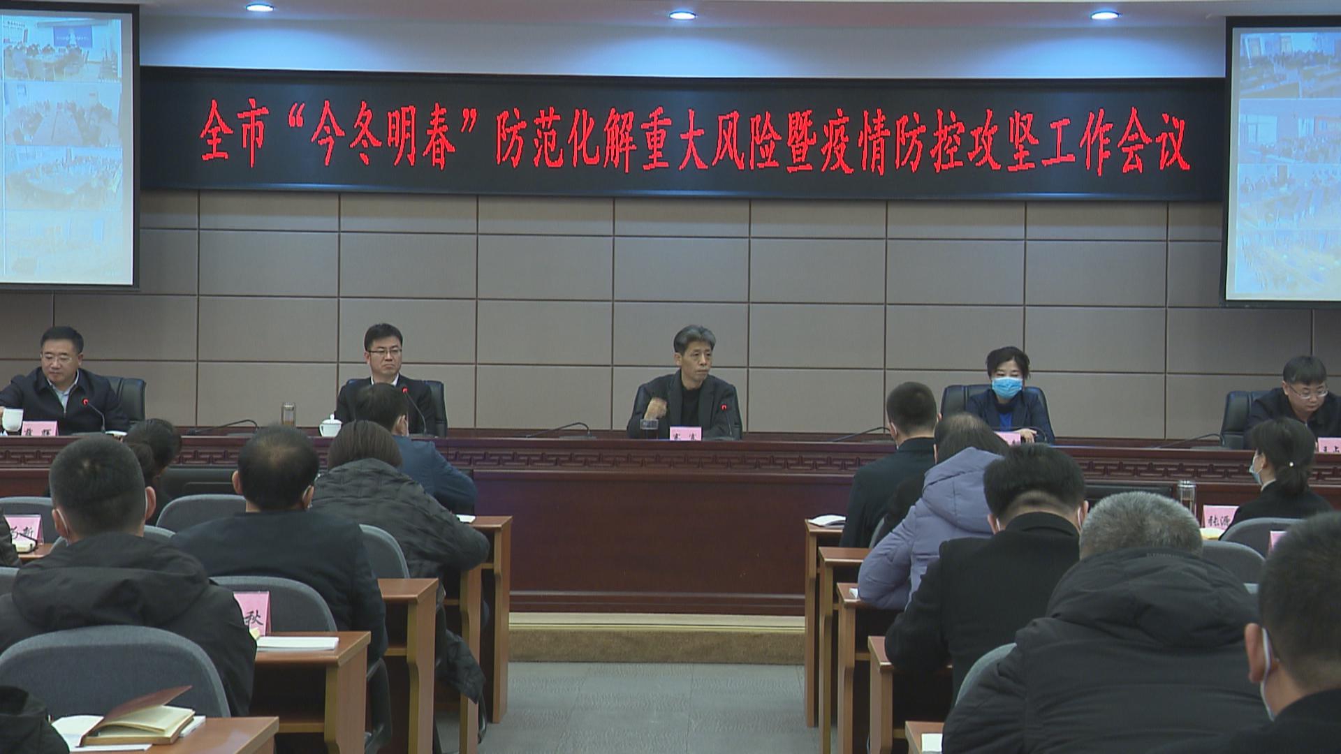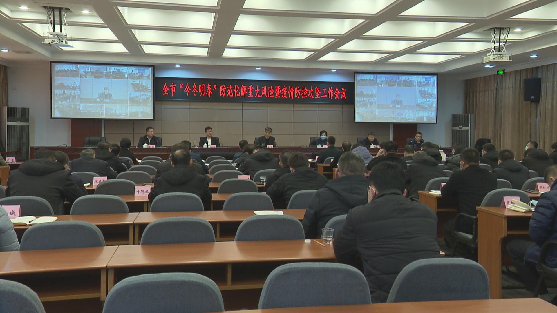 会上,市委常委、副市长王占林,市委常委、政法委书记薛辉,副市长刘俊峰分别汇报了“今冬明春”疫情防控、安全生产、信访维稳、消防安全等工作情况。