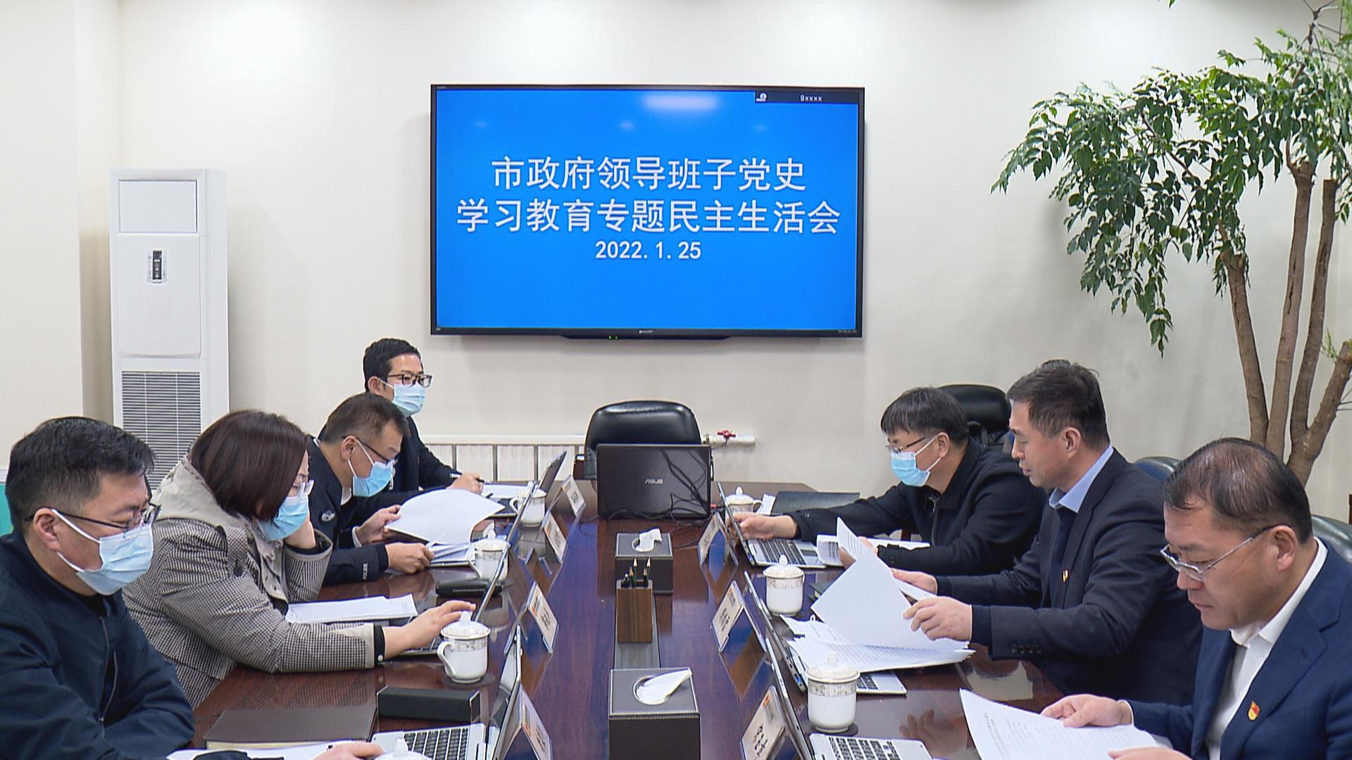 1月25号下午,市政府领导班子召开党史学习教育专题民主生活会,围绕“大力弘扬伟大建党精神,坚持和发展党的百年奋斗历史经验,坚定历史自信,践行时代使命,厚植为民情怀,勇于担当作为,团结带领人民群众走好新的赶考之路”这一主题,全面对照检查,认真查摆问题,深入开展批评和自我批评。市长周振雷主持会议并讲话。市政府领导班子党员同志参加会议,副市长郭兆平、市政府办公室主任王志超和市纪委监委相关负责同志列席会议。