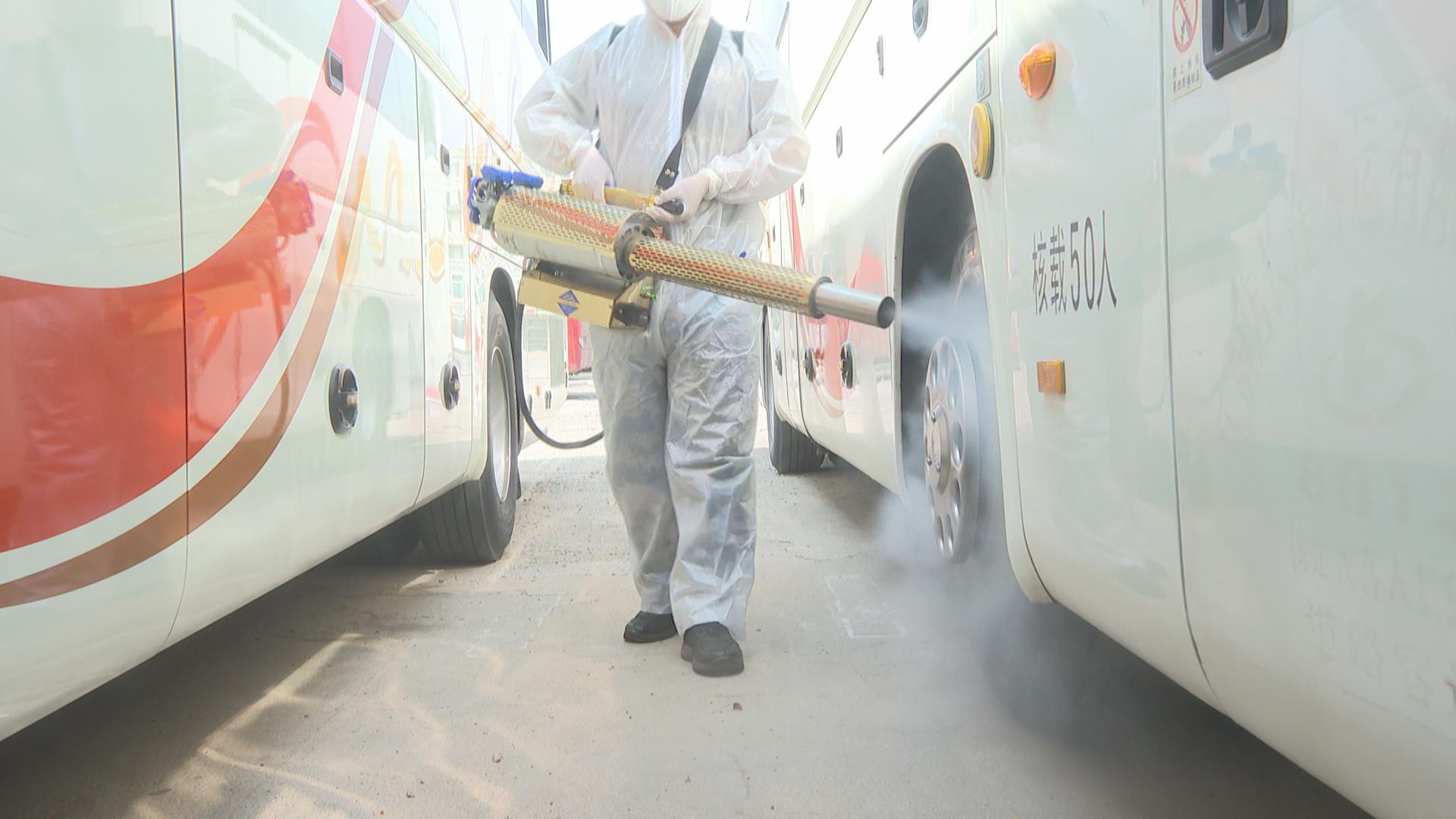 下午1点半,记者在客运站见到,身着防护服、背着消杀器械的志愿者和站内工作人员正在客运站内开展消杀作业。候车厅、服务台的地面、栏杆以及站台上,每个角落他们都认真地逐一进行消毒,确保不留任何卫生死角。随后,消杀人员又来到站内车场,对停靠在这里的预复工大巴车进行全部消杀。车内车外,方向盘、座椅、玻璃、轮胎,每处都仔细喷洒。经过10名志愿者一个多小时的努力,此轮消杀工作共完成场所消毒面积7000平、运营车辆30多台,为乘客出行健康安全保驾护航。