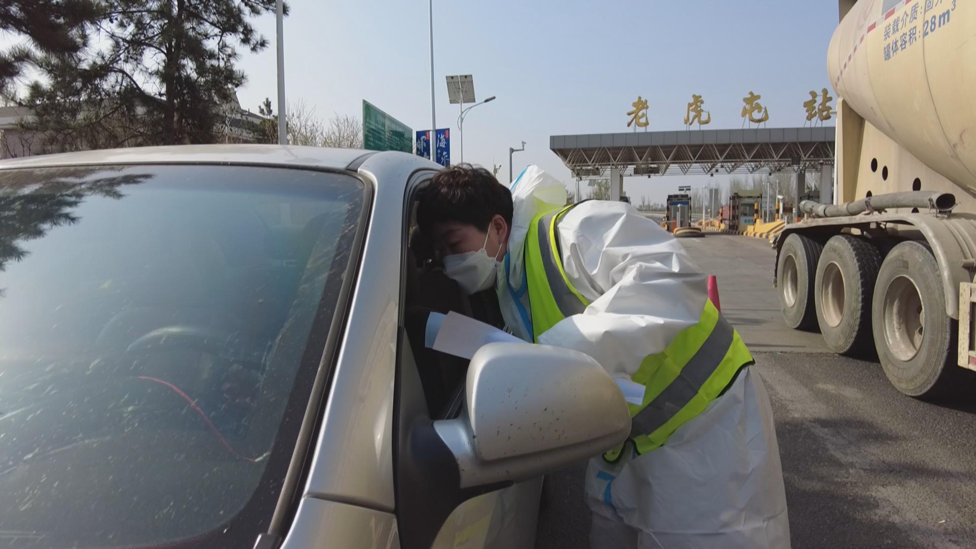 近日,记者在老虎屯高速路口看到,老虎屯镇广大机关干部、村干部与志愿者一道,紧张忙碌,奋战防疫一线。大家身穿防护服,现场检查来往车辆,认真查看健康码、核酸检测报告、通行证等,仔细进行人员身份核实和车辆登记,按照疫情防控要求,车辆现场贴上封条,落实落细防控措施,外防输入,全力做好疫情防控工作。