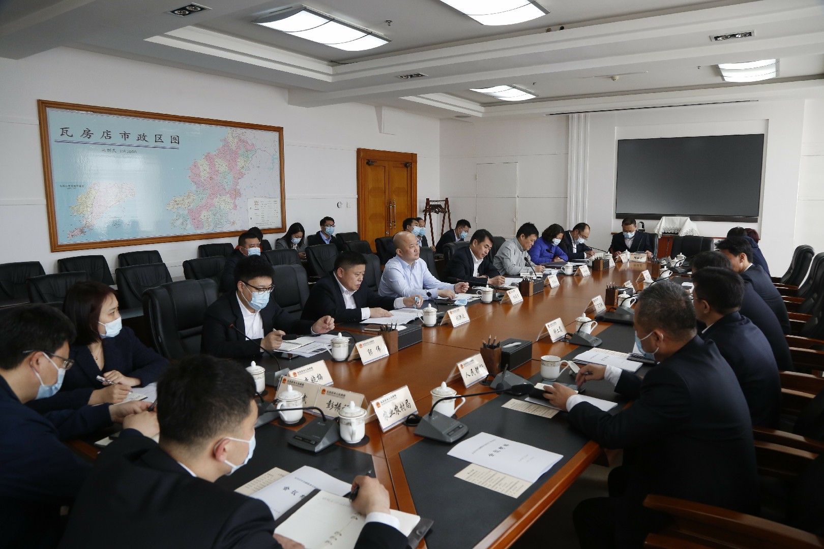 4月25日上午,我市召开金融服务实体经济洽谈会,市委副书记、代市长李巍与兴业银行大连分行等金融机构负责同志共聚一堂,围绕金融服务实体经济工作进行深入交流。市科工局、财政局、商务局、人民银行瓦房店支行等主要负责同志参加会议。