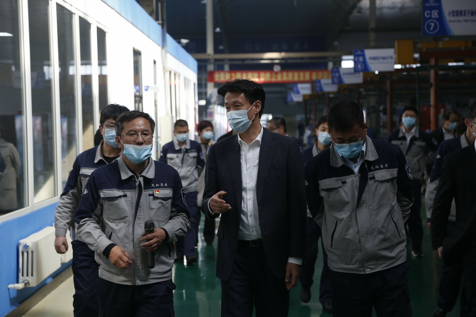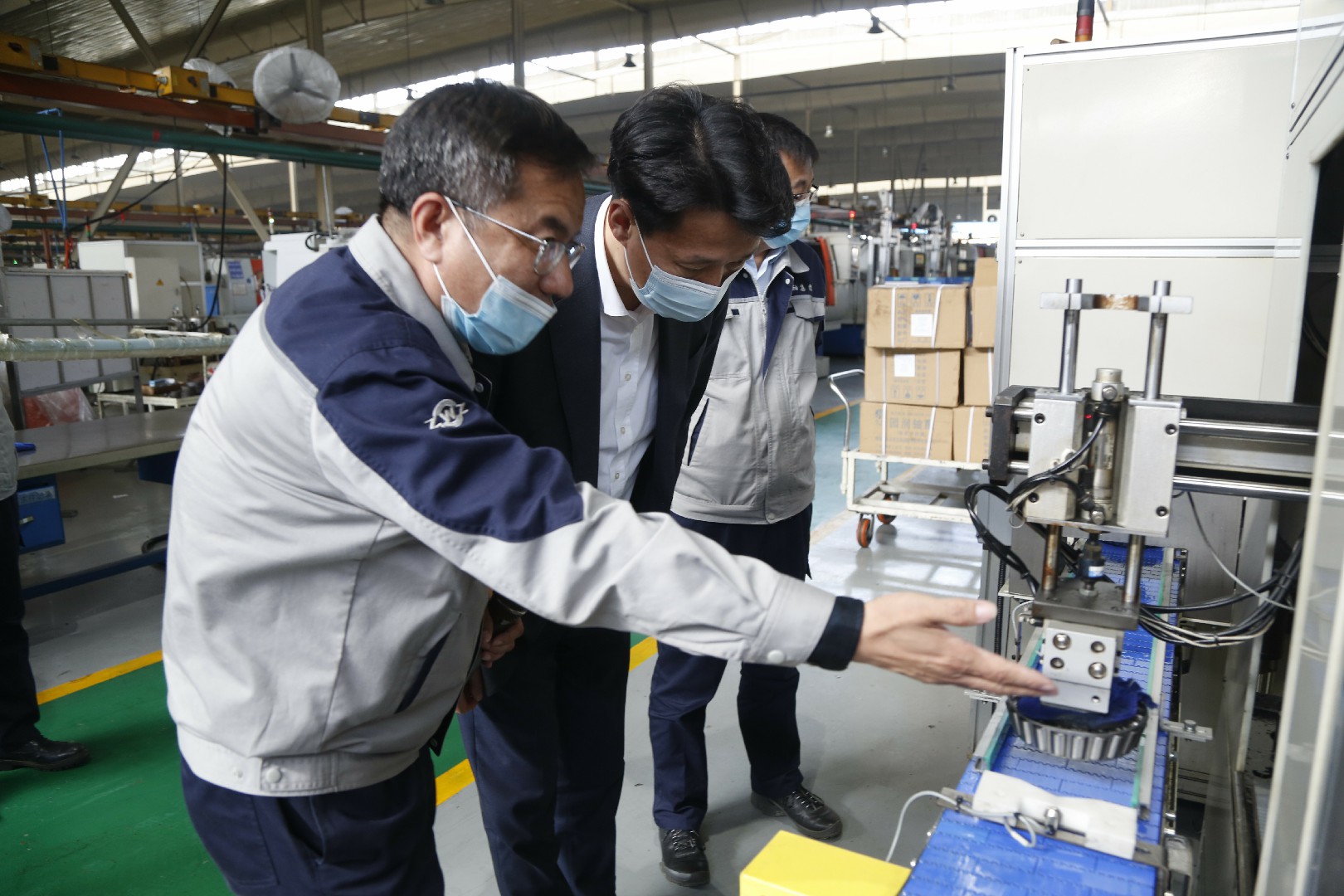 在轴承产业开发区瓦轴集团南区,李巍走进高端汽车轴承、精密球面滚子轴承和铁路货车轴承等智能化生产车间,实地了解企业生产经营情况和安全生产等相关情况。
