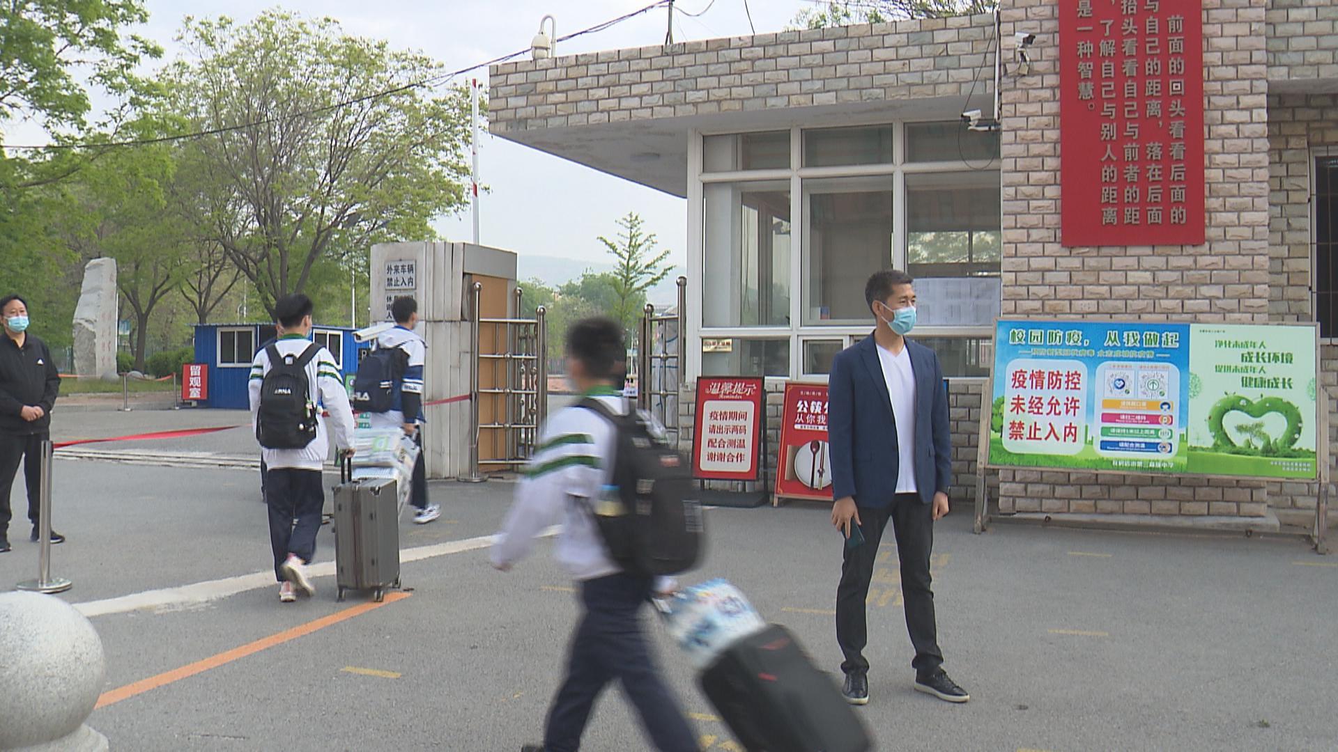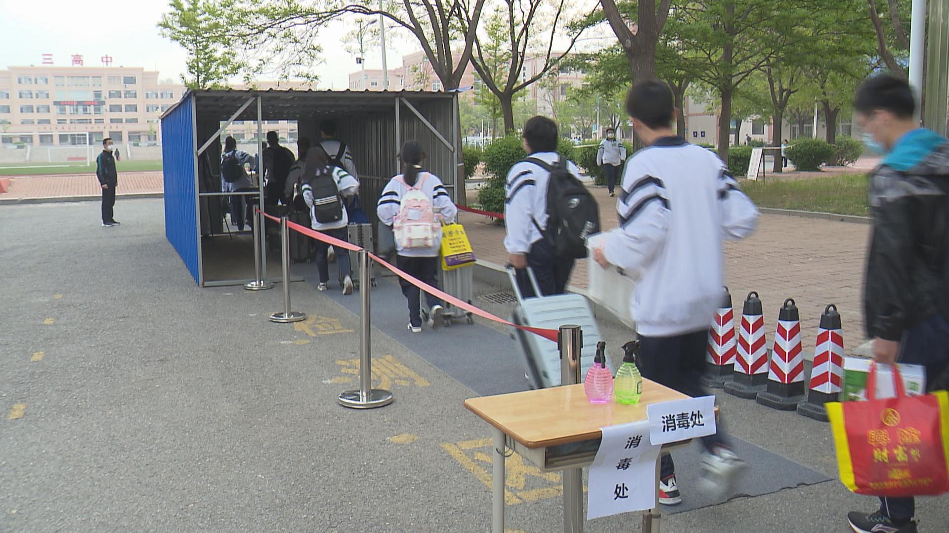 在学校周边,记者注意到,交警已提前到岗值勤,帮助疏导交通,返校的高一、高二学生在教职工的引导下,间隔一米,排队有序通过测温通道。校内已提前设置高三学生活动区域,做到和高一高二学生不交叉。