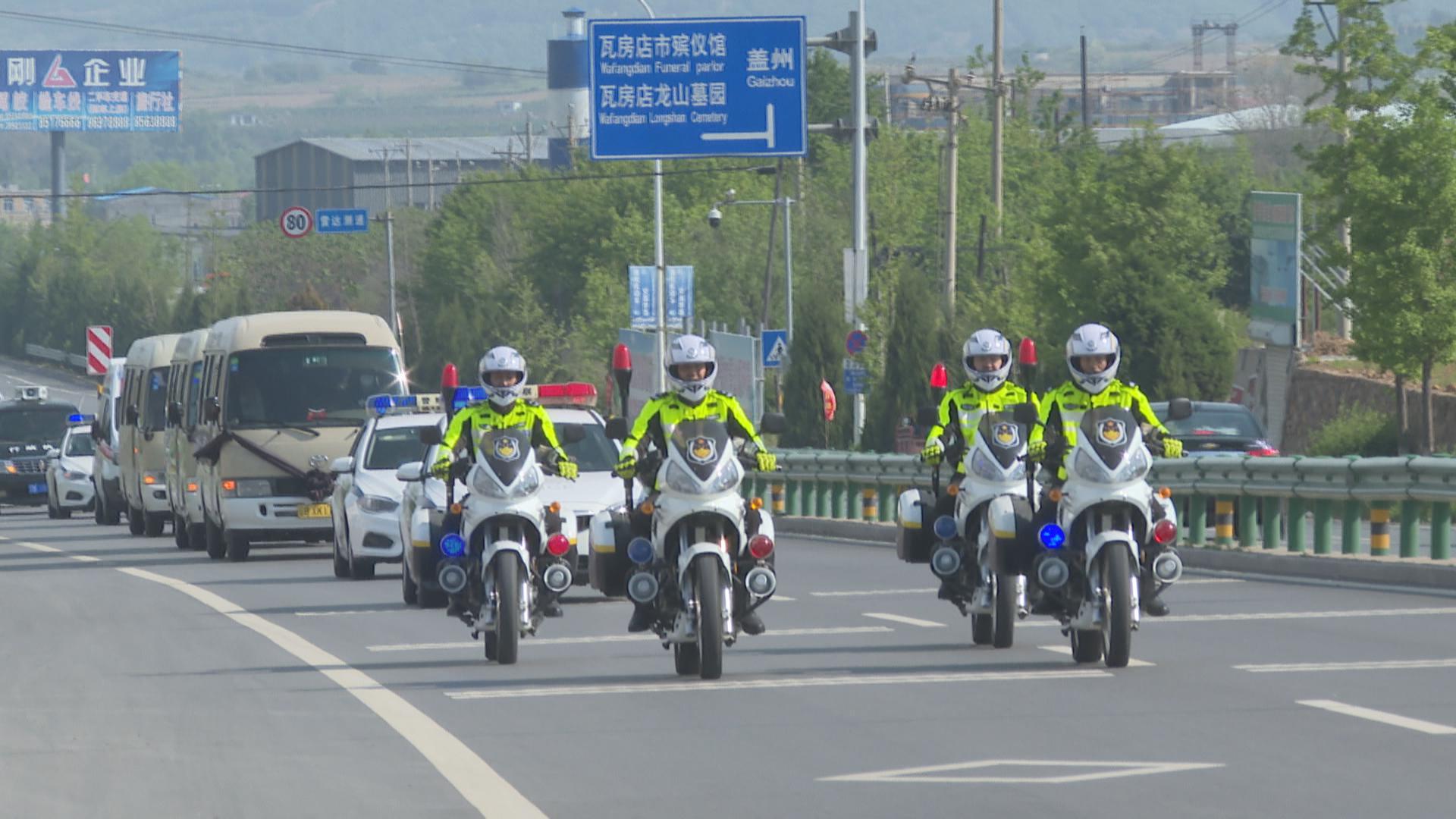 上午8时,崔富帅烈士英灵护送车队在骑、交警车引导和护卫下从龙山公墓祭祀园出发缓缓驶向烈士陵园。