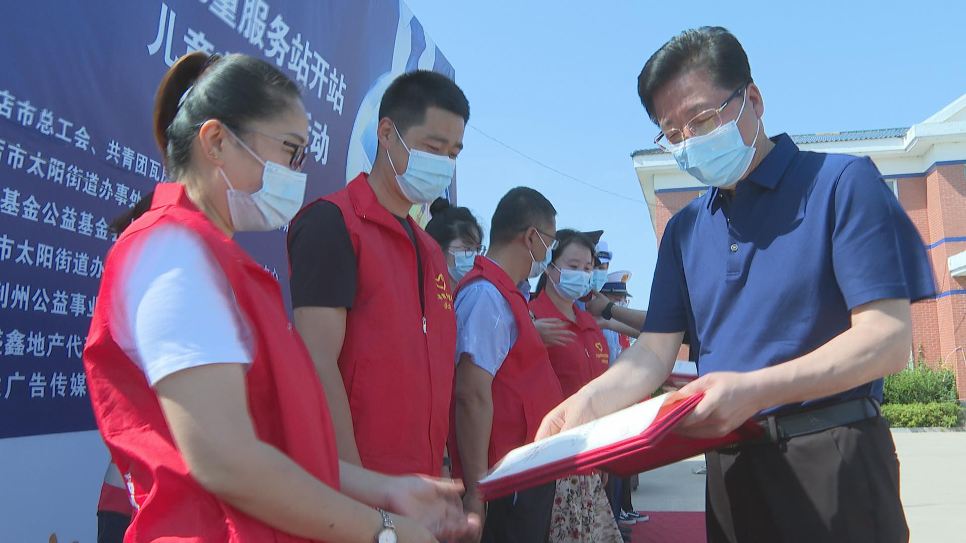 挂牌仪式上,主办单位还为王店村儿童代表赠送了学习用具,并为服务站首批志愿者老师颁发聘书。