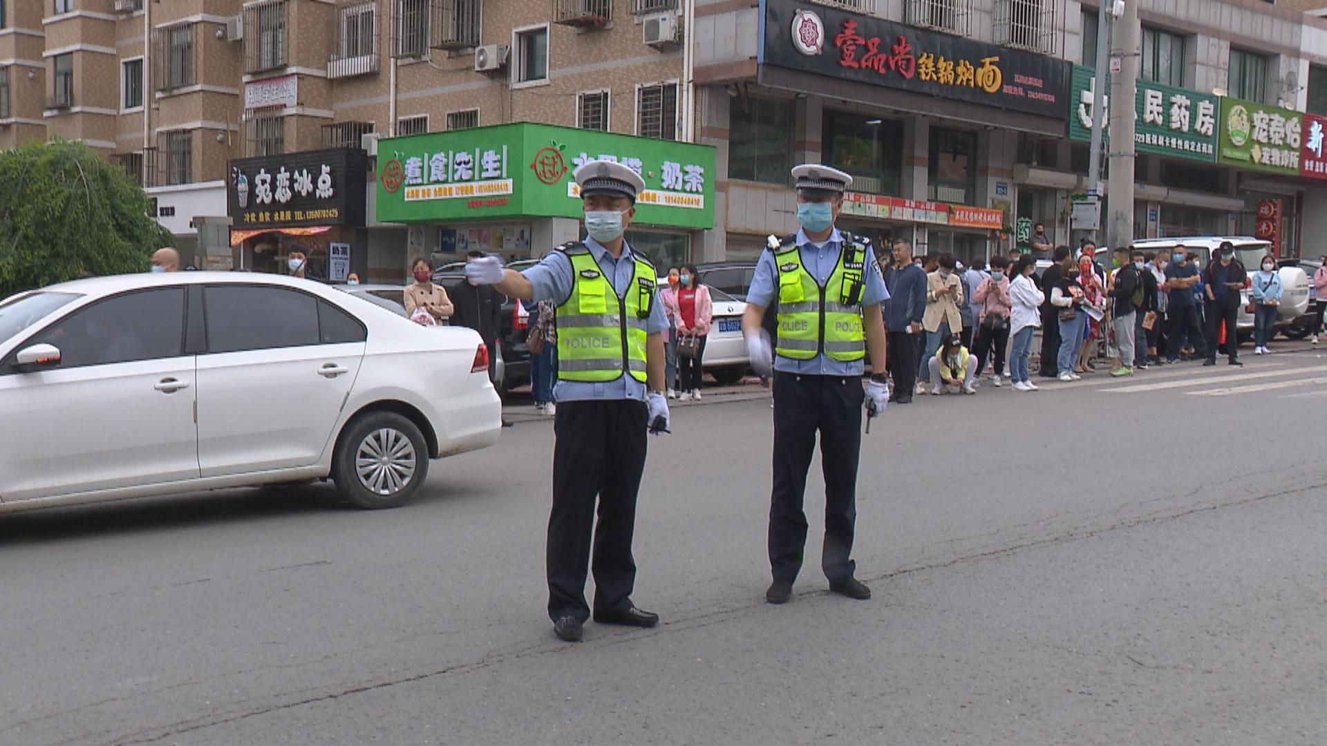 一大早,交警们便来到各执勤点位,对全市路面交通进行统一指挥、统一调度,“一路绿灯”保障全市考生安全顺利抵达考点。记者在实验高中、四中等考点看到,交警们身着统一耀眼的荧光绿色制服,十分醒目。在考点前精心筹划,科学调度,并在考点周围拉开隔离带,确保考生安全有序进入考场。在考生进入考场后,交警们仍然坚守在岗位上,落实禁止车辆鸣笛,组织车辆有序通行等有效保障措施,为考生们保驾护航。