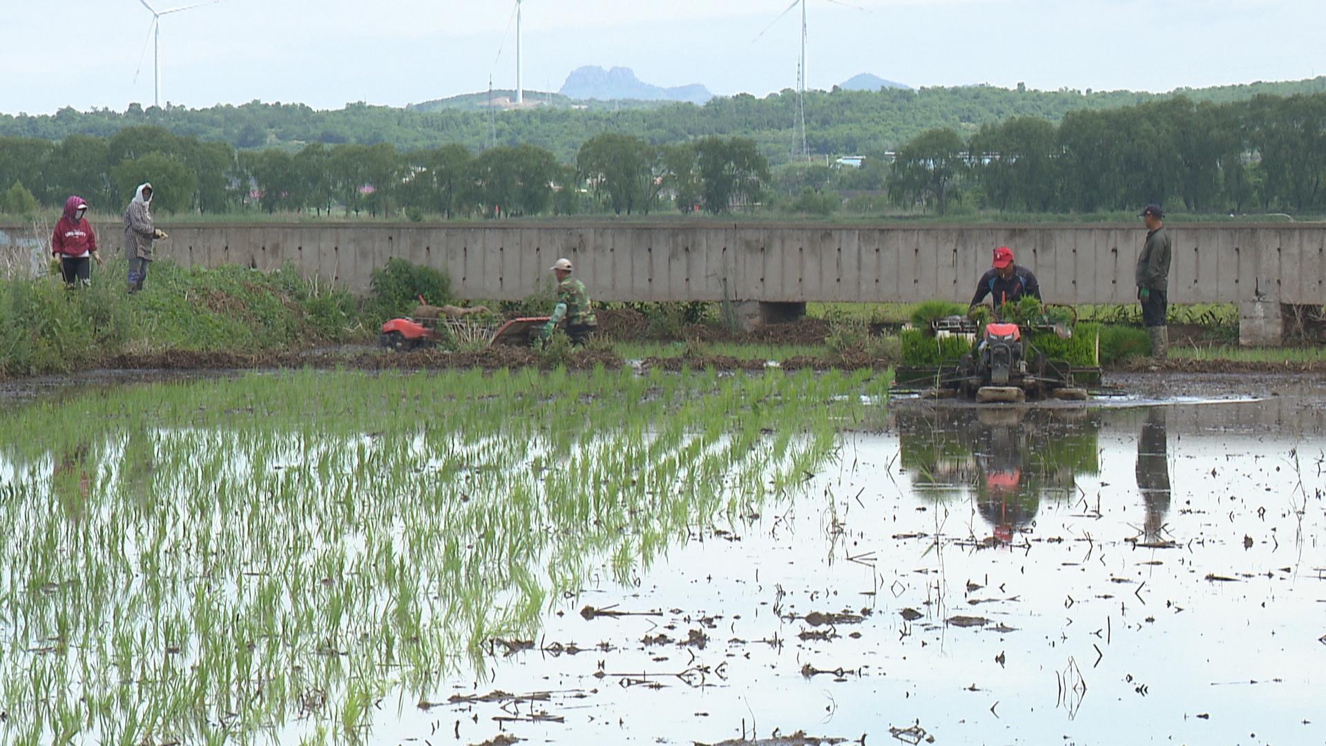 国军家庭农场从2014年开始承包稻田进行水稻种植,最初的承包面积仅100亩左右,到现在已达600多亩。为了提高插秧进度,农场从营口等地雇佣插秧机进行机械化插秧,这样可以大大减少人工,一台插秧机一天就可以插秧三十多亩。