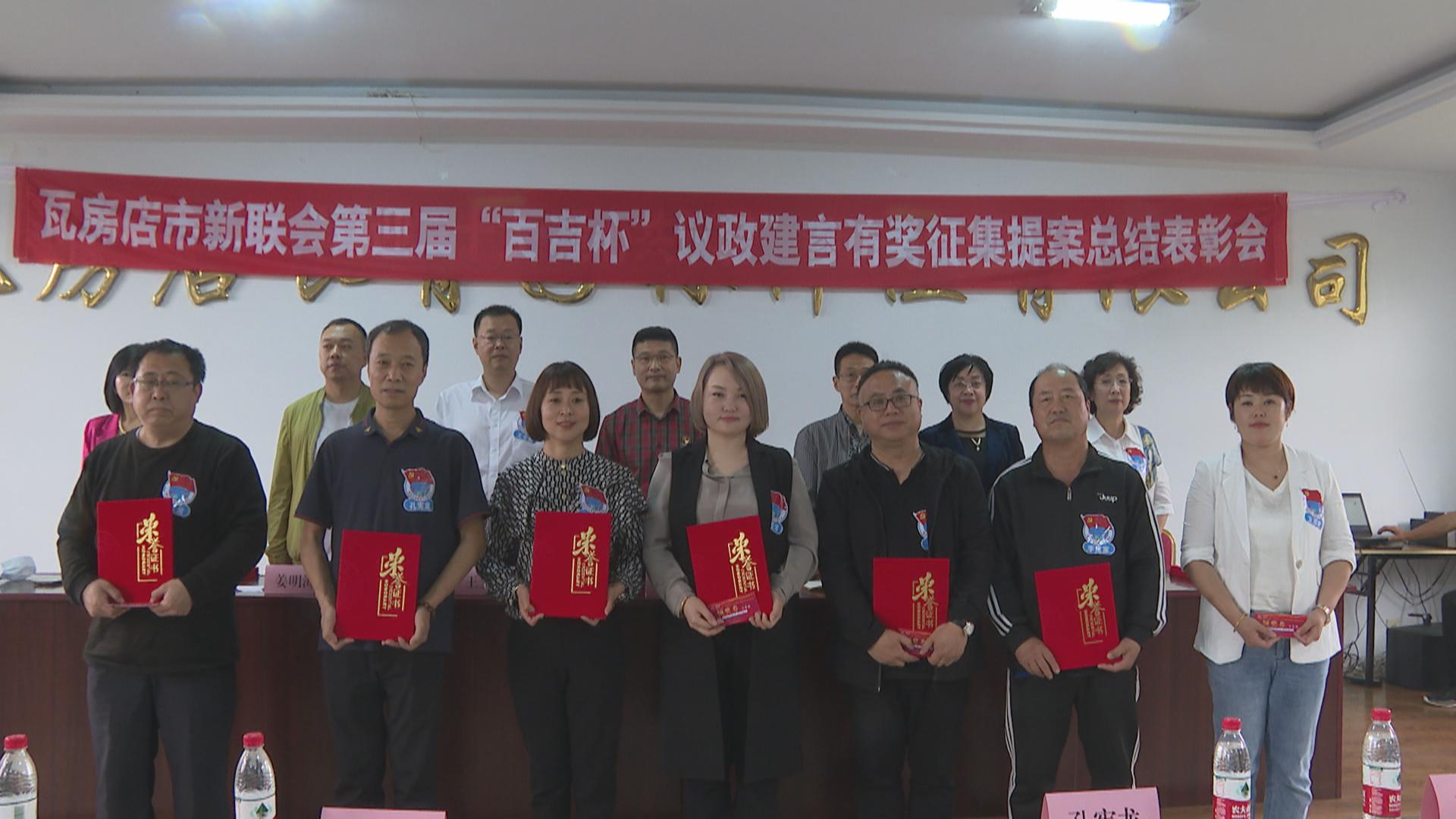 日前,市新的社会阶层人士联谊会召开第三届“百吉杯”议政建言有奖征集提案总结表彰会,对参与我为瓦房店经济振兴高质量发展建言献策有奖征集活动中的优秀提案者进行表彰。市委统战部、市政协提案委有关领导参加会议。