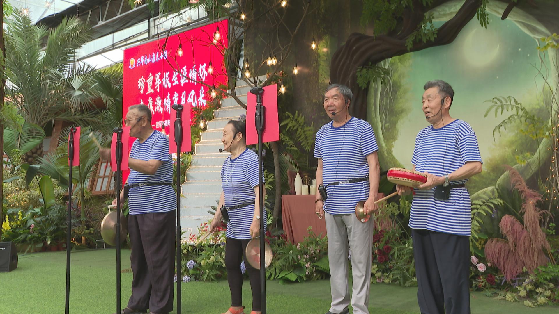 7月29号下午,兴华园老年公寓的老战士们在兴华集团南山康养小镇热带雨林俱乐部举办了一场以“珍重军旅生涯情怀,永葆激情岁月风采”为主题的联欢文艺汇演活动,用自编自演的文艺节目,庆祝中国人民解放军建军95周年,展示军民鱼水深情。