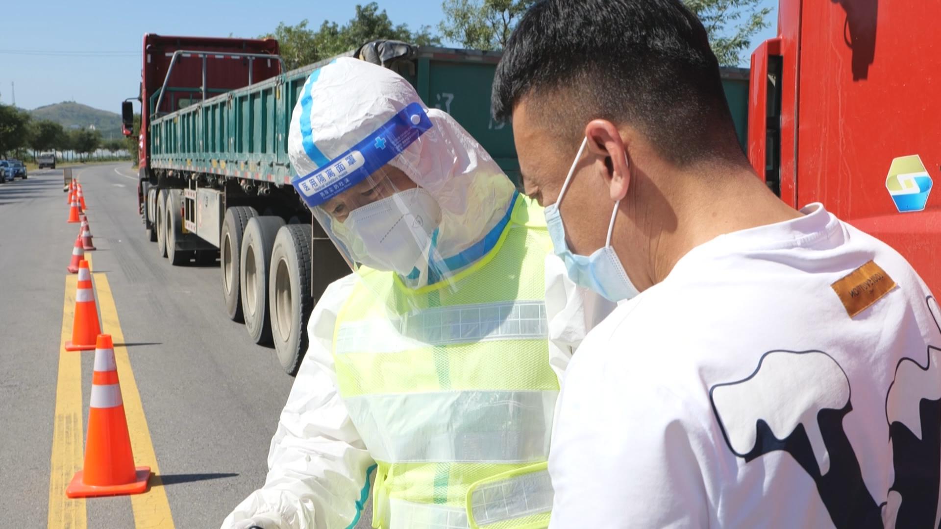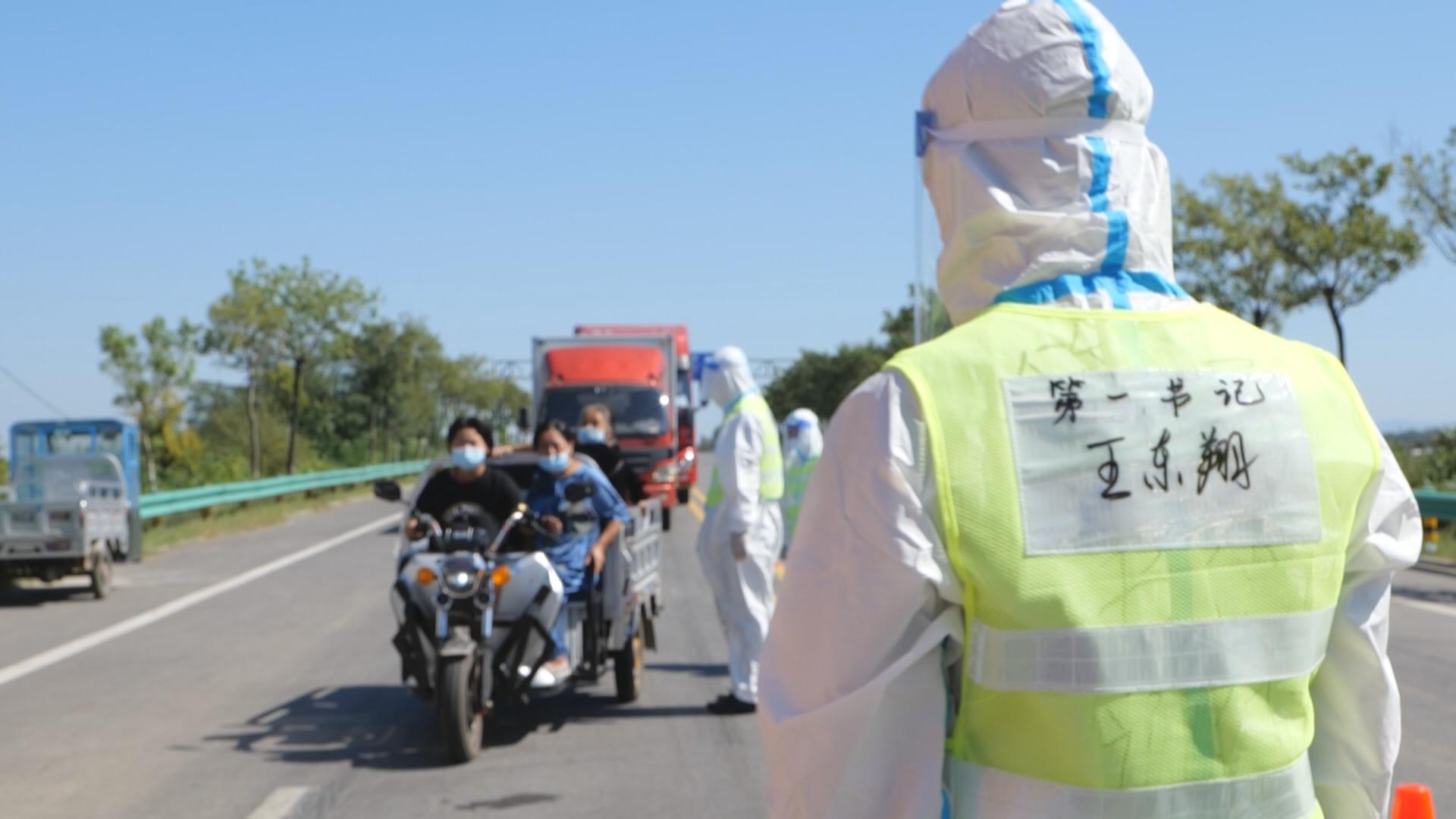 9月8号上午,在滨海路李官卡口,略显瘦小的李官镇华铜村第一书记王东翔,身穿宽松的防护服,与其他工作人员一道,辛勤的忙碌着,对过往车辆和人员进行严格查验,坚守在抗疫一线。与此同时,另外几名驻村第一书记也正在202国道李官镇卡口值班值守,助力疫情防控。