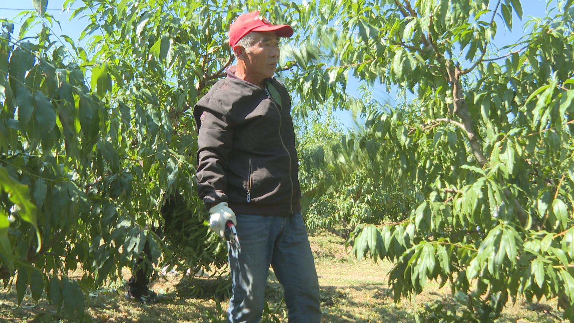 在杨庆林的桃园里,记者看到杨庆林一家三口正在进行桃树修剪。