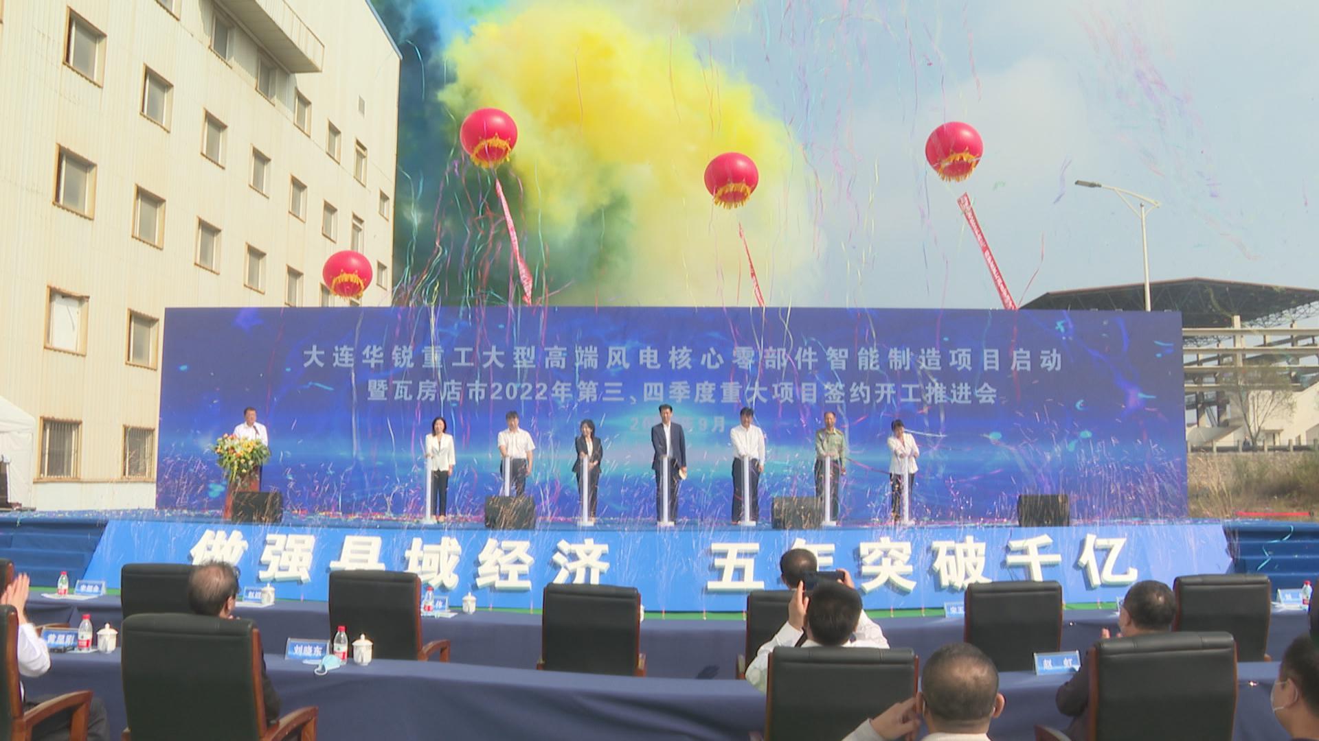 凝心聚力、鼓足干劲,再掀全市项目建设新高潮,9月29号上午,我市举行大连华锐重工大型高端风电核心零部件智能制造项目启动暨瓦房店市2022年第三、四季度重大项目签约开工启动仪式。市领导李巍、赵迎春、宋玉章、李佃会、王占林、刘晓君,市人大、市政府、市政协相关领导,大连重工装备集团有限公司党委书记、董事长孟伟,中国铁工投资建设集团有限公司副总经理李斌以及部分企业家代表等参加启动仪式。