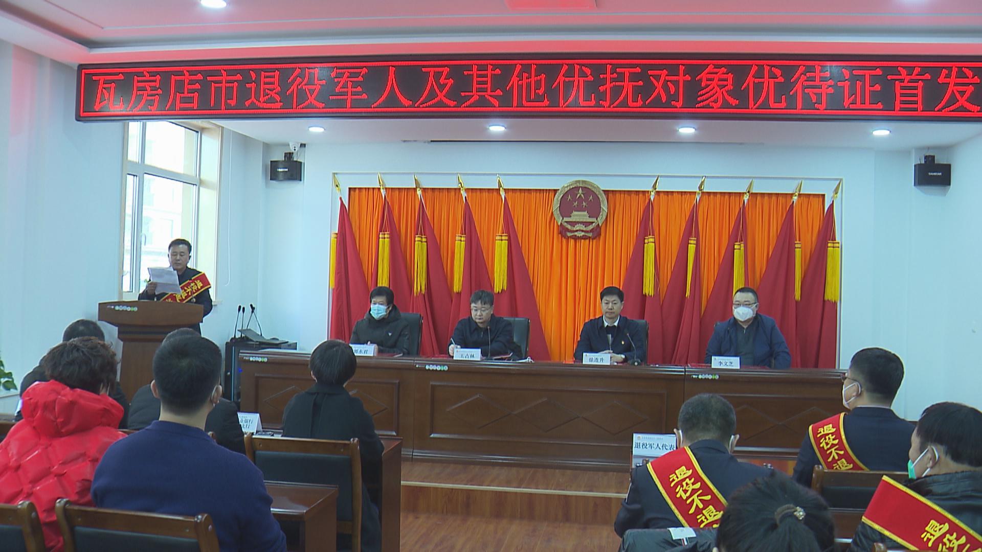 仪式上,市退役军人事务局相关领导介绍了全市建档立卡及优待证申领情况。退役军人代表张世明和王志军分别进行了发言,他们表示,优待证卡片虽小,但分量很重,饱含了党和国家对退役军人的关爱,未来一定会继续发扬军人作风,在各自的岗位上履职尽责,再立新功,退伍不褪色,为瓦房店市经济社会发展不断做出新的贡献。