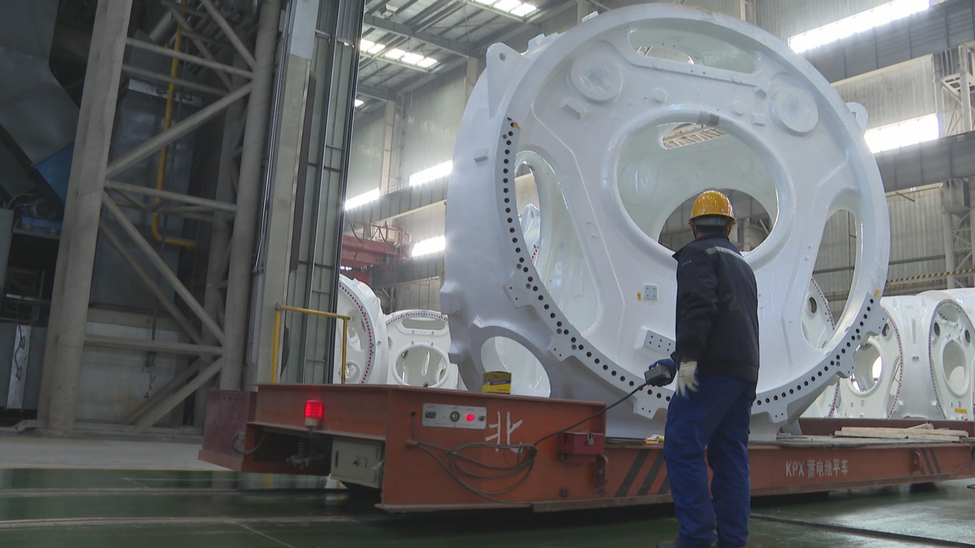 2月15日上午,在大连华锐重工铸业有限公司生产加工车间内,一片繁忙景象,一批海上12—14兆瓦风机前机架铸件产品,正在紧张加工,300件该类大型铸件产品加工完成后,将通过海运出口法国。