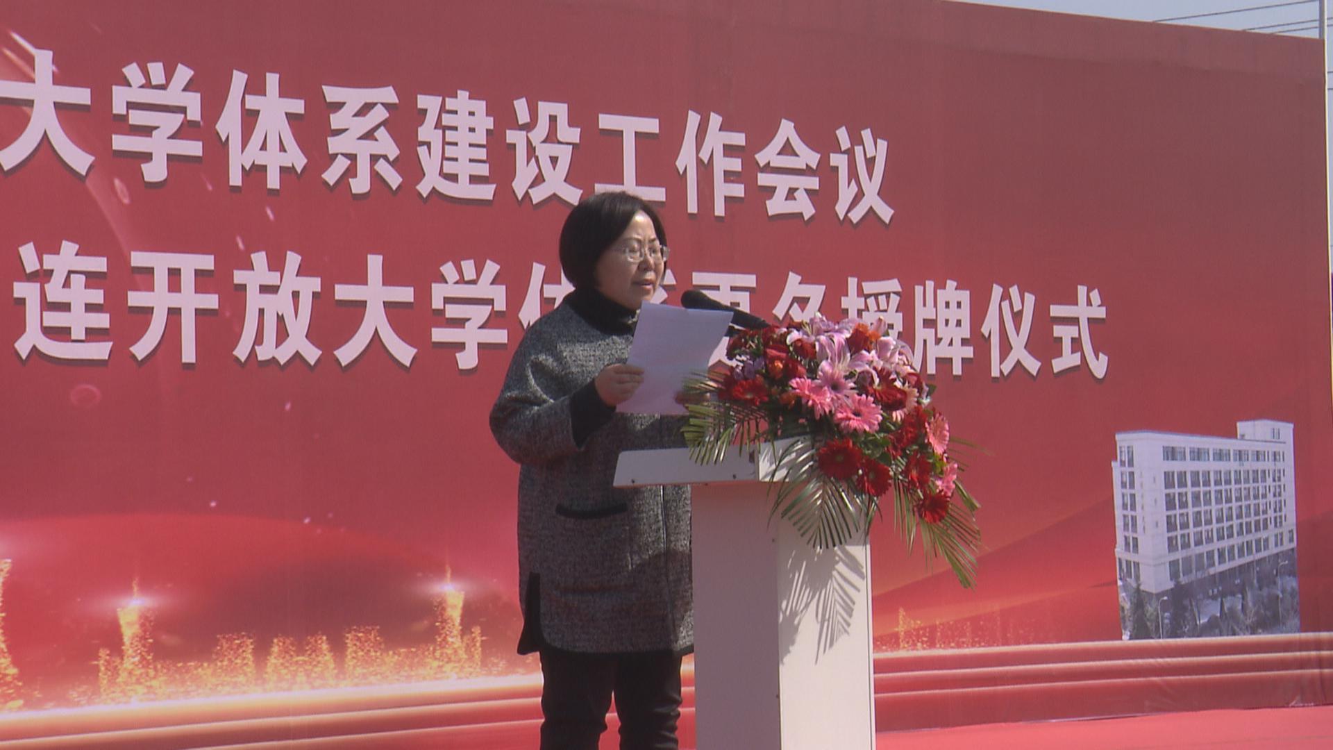 3月17号,大连开放大学在我市召开大连开放大学体系建设工作会议并举行大连开放大学体系更名授牌仪式,副市长郭兆平,大连开放大学和我市教育局相关领导出席活动。