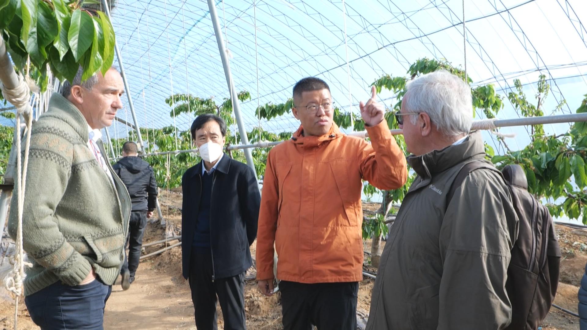 这些外国友人分别来自西班牙、英国、荷兰、智利等国家,他们兴致勃勃地走进企业樱桃产业园区,详细询问樱桃种植的温度、湿度、修剪、施肥、病虫害防治等方面内容,了解樱桃品种、市场销售等情况,对企业的智能化种植、先进管理方式赞叹不已。
