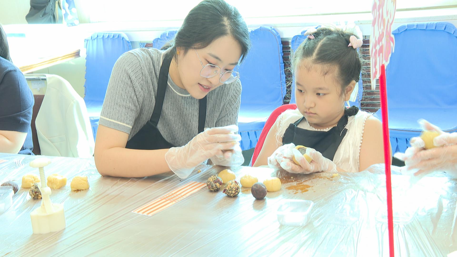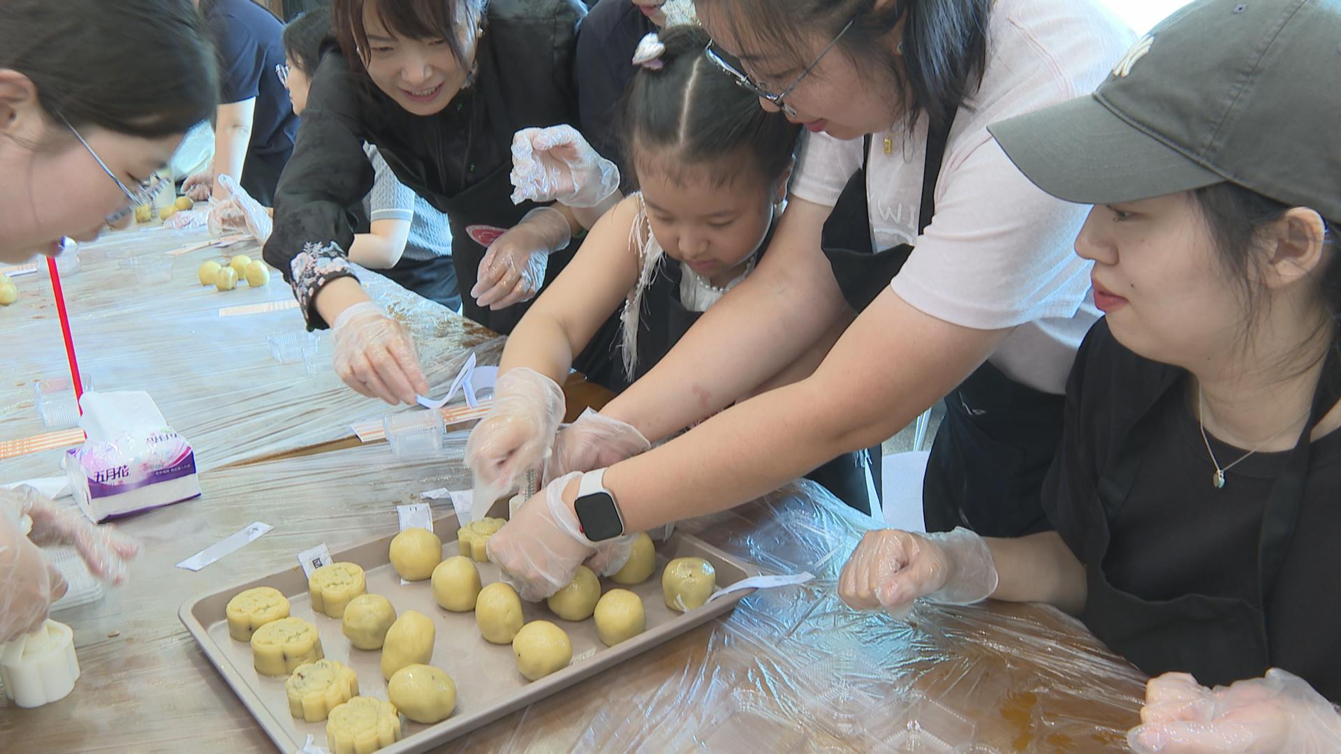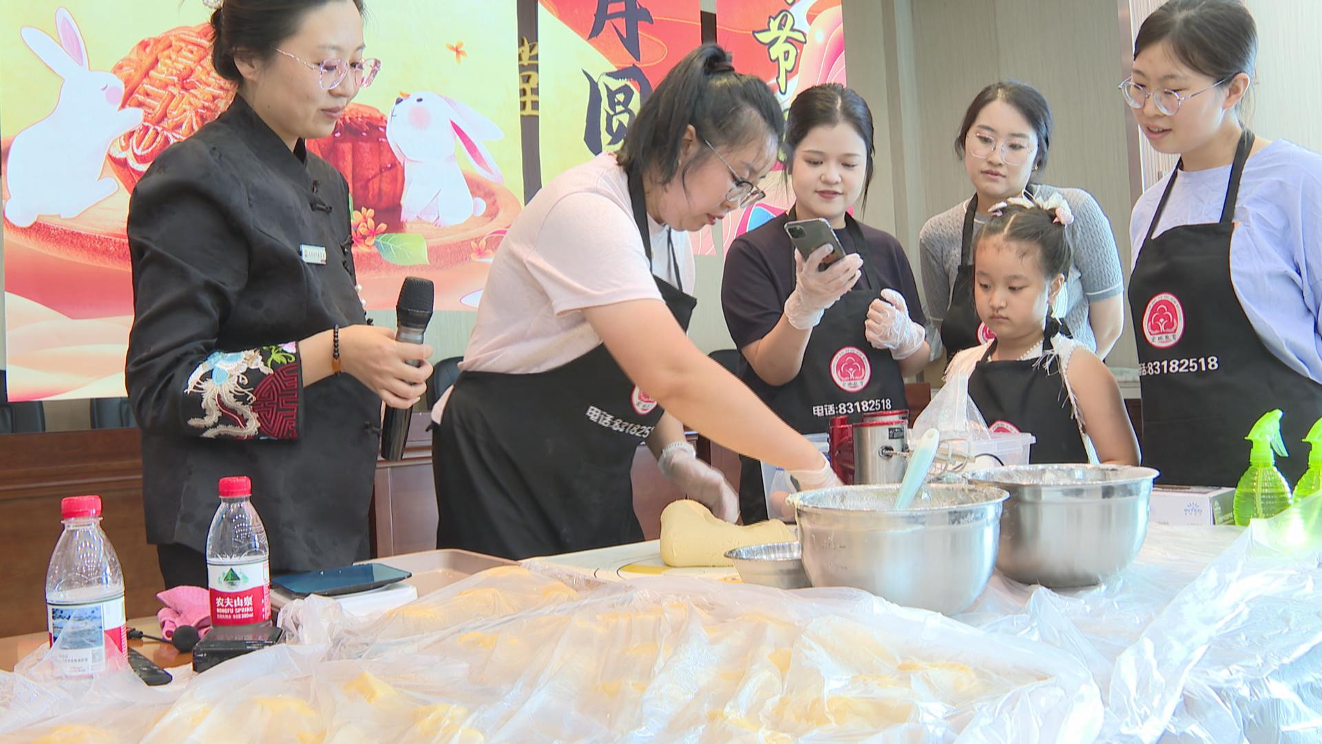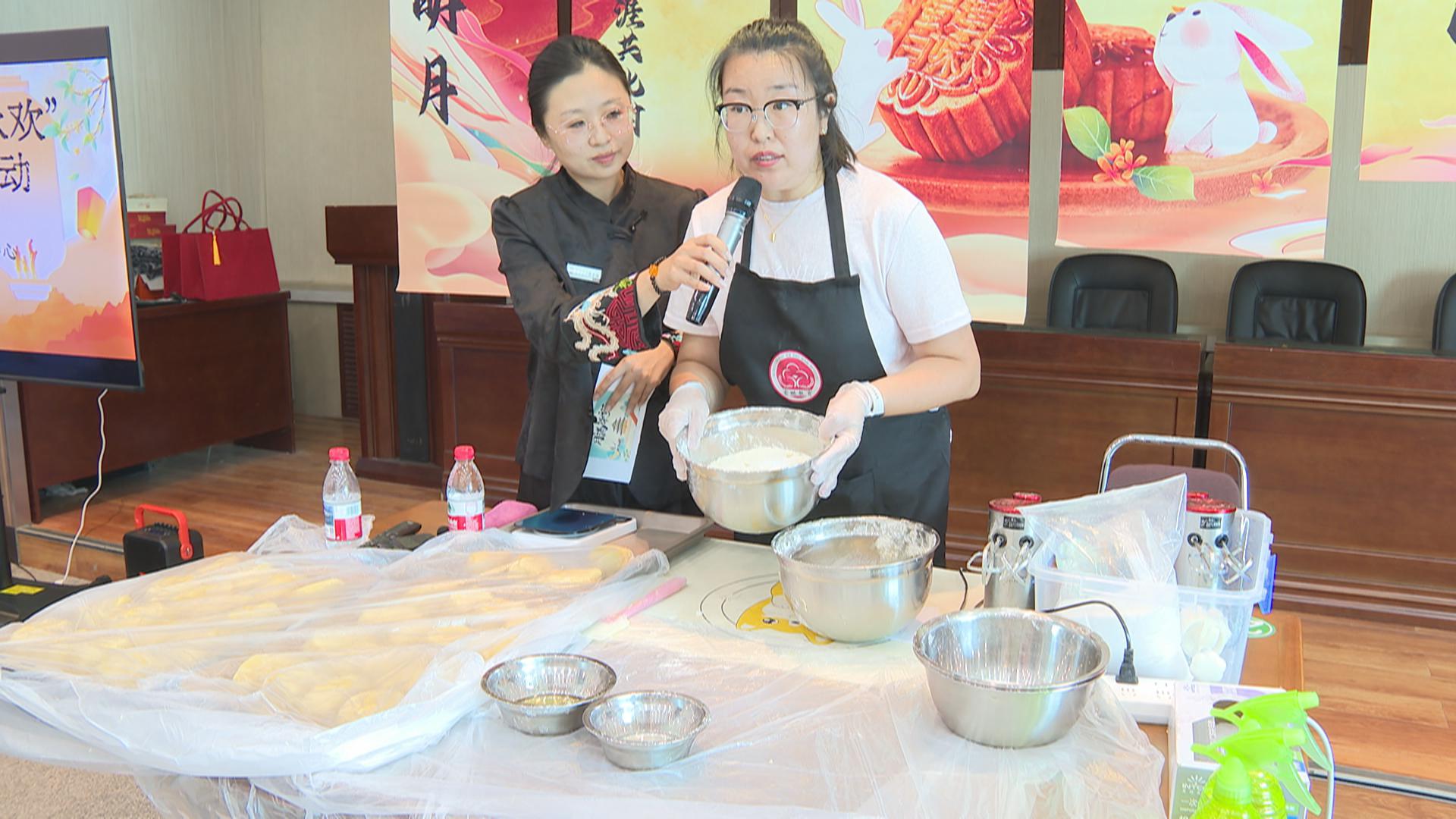 精心布置的活动现场,充满了浓厚的节日氛围。工作人员早早地准备好了制作月饼所需的面粉、馅料、模具等各种材料,专业烘焙老师向读者朋友们细致讲解并演示了从和面、包馅到压模成型的每个步骤,大家边学边做,在实践中感受着传统技艺的魅力与乐趣。在等待月饼烘烤的间歇,中秋传统趣味灯谜竞猜环节应声上线。大家踊跃参与,争相解谜,欢声笑语中不仅收获了小礼品,更加深了对中秋文化的了解。随着烤箱定时器提示音的响起,香气四溢的月饼新鲜出炉。大家分享着彼此的心得与喜悦,并将亲手制作的月饼打包装盒,带回家跟家人分享,每一枚月饼都包裹着满满的成就感和节日的甜蜜。