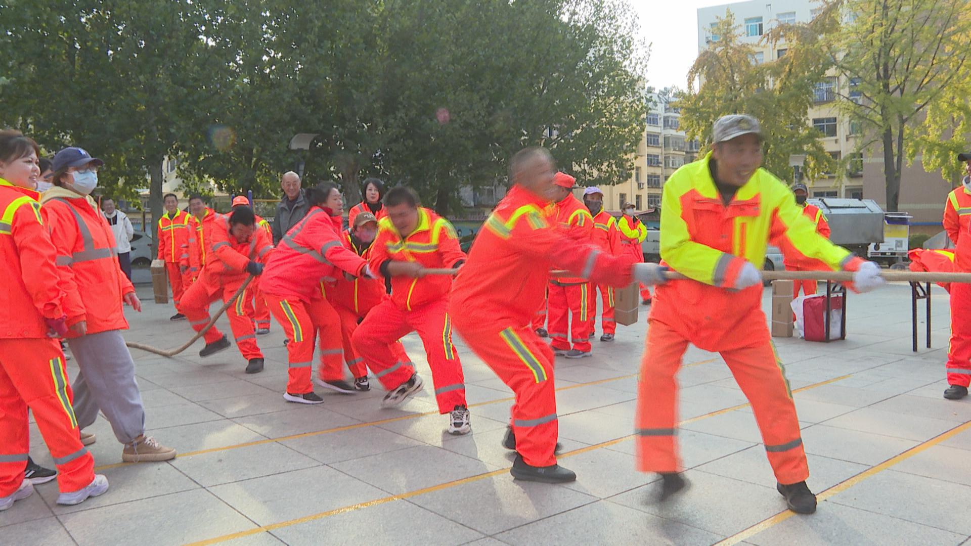 表彰仪式结束后,现场举办了形式活泼、内容丰富的趣味运动会。环卫工人们踊跃参与各项比赛,在轻松愉快的氛围中展现出昂扬向上的精神风貌,进一步增强了队伍的凝聚力与向心力。