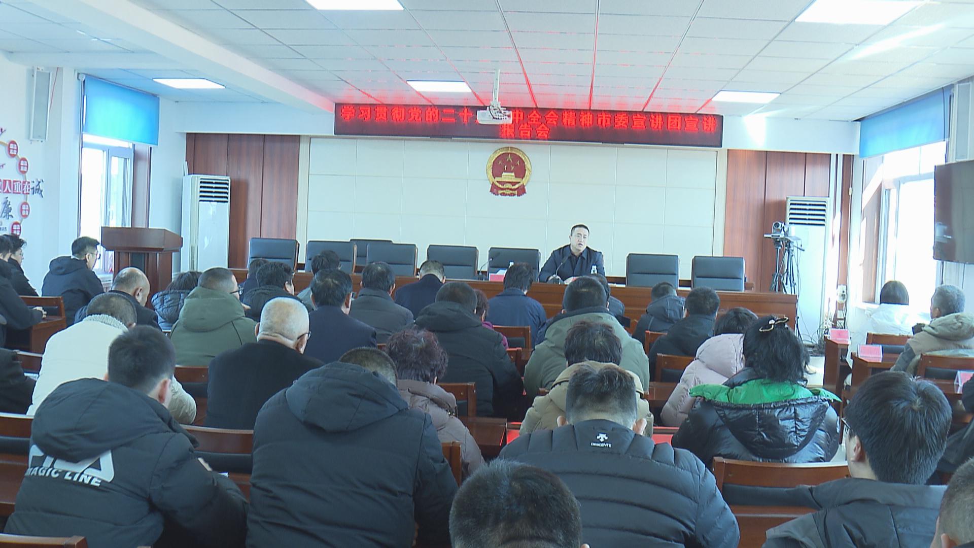 日前,阎店乡党委召开学习贯彻党的二十届四中全会精神市委宣讲团宣讲报告会。邀请市委宣讲团成员、市文旅局局长王秦为全体党员干部宣讲党的二十届四中全会精神,进一步动员全乡上下学习好、宣传好、贯彻好全会精神,切实把思想和行动统一到党中央决策部署上来。