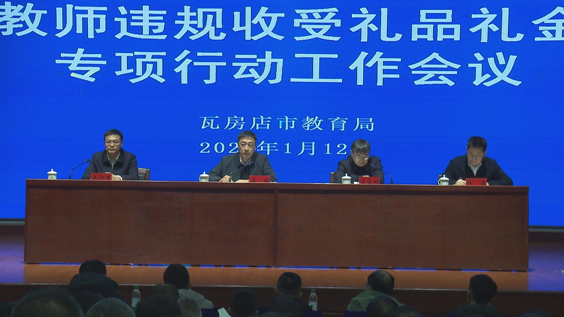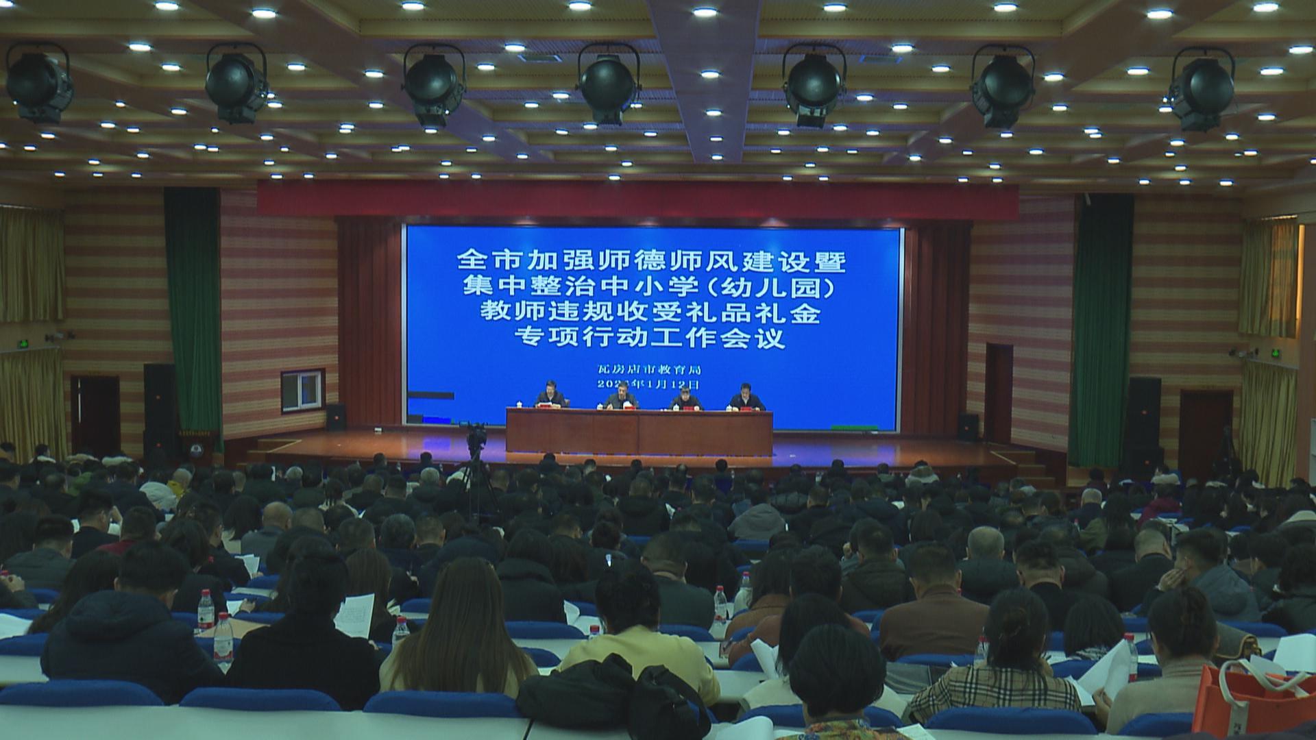 1月12号,我市召开加强师德师风建设暨集中整治中小学(幼儿园)教师违规收受礼品礼金专项行动工作会议。深入贯彻落实全省优化营商环境大会精神和省、市专项行动部署会议精神,动员全市教育系统统一思想、凝聚共识,以坚决态度和务实举措,推进师德师风建设和专项整治工作,推动师德师风建设走深走实。市领导马明、王占林、朱阿男出席会议。