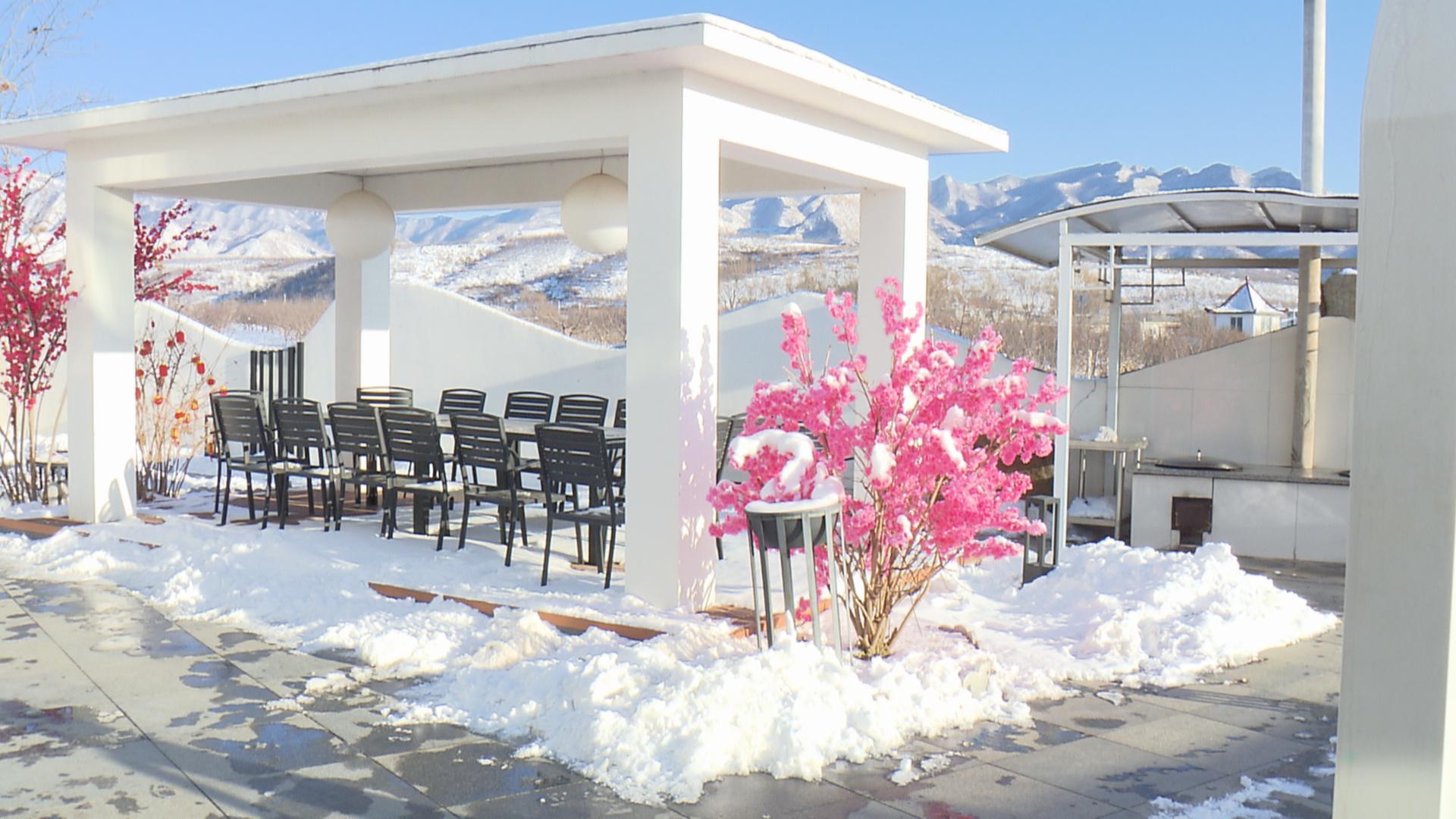 冬雪覆盖远山,许屯镇龙门汤温泉的庭院却热气氤氲。百年温泉富含的微量元素吸引着游客的到来,而温泉民宿院落里的风景也独具匠心,色彩鲜艳的腊梅搭配着凉亭,抬眼可见远处山峦的白雪皑皑,游客在热汤里欣赏着水墨画般的景色,疲惫与寒冷瞬间消散,让身心得到舒展与惬意。