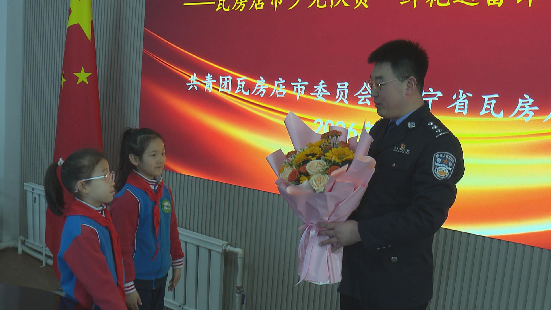 在新时代文明实践中心,少先队员还为郭明义爱心团队雷锋班志愿者先锋队、郭明义爱心团队瓦房店市明浩分队、大连瓦房店万众救援队、瓦房店金海出租车青年志愿者服务队和师范学校志愿者服务队的志愿团队送上鲜花,这些志愿者们常年奔波在瓦房店的大街小巷,用奉献彰显了向上向善的雷锋精神。